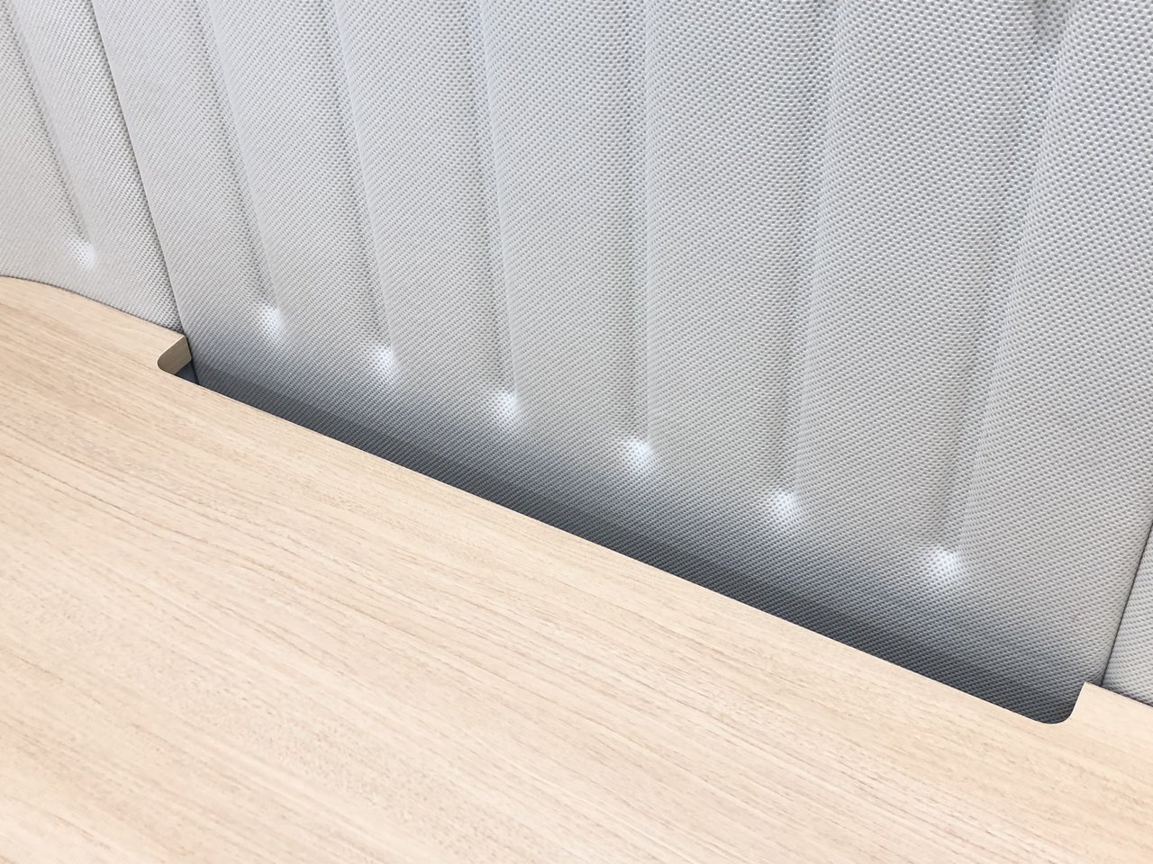 人をやさしく囲い込み、リラックス感を醸し出すアール形状、圧迫感の少ない柔らかな表面材が特徴的です。