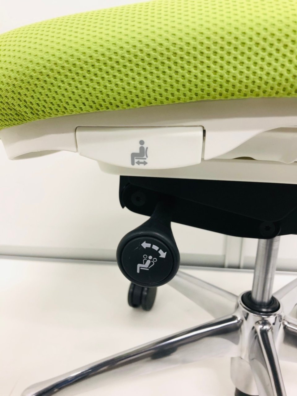 - 座面右下のレバーをスライドさせる「クイックスライドオペレーション」で、リクライニング反力を調整できます。強さの状態が視覚的にわかるため、直感的に操作がおこなえます。