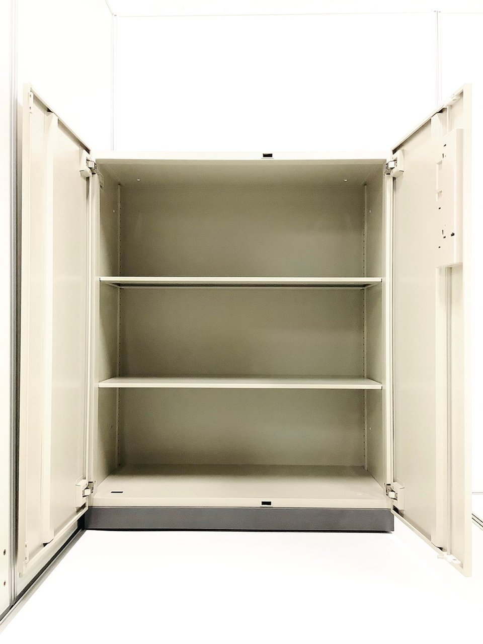- 両開きタイプは扉が180度開き、通路の邪魔になりません。ラテラルタイプは引出しが限界まで出せ、出し入れ楽々。