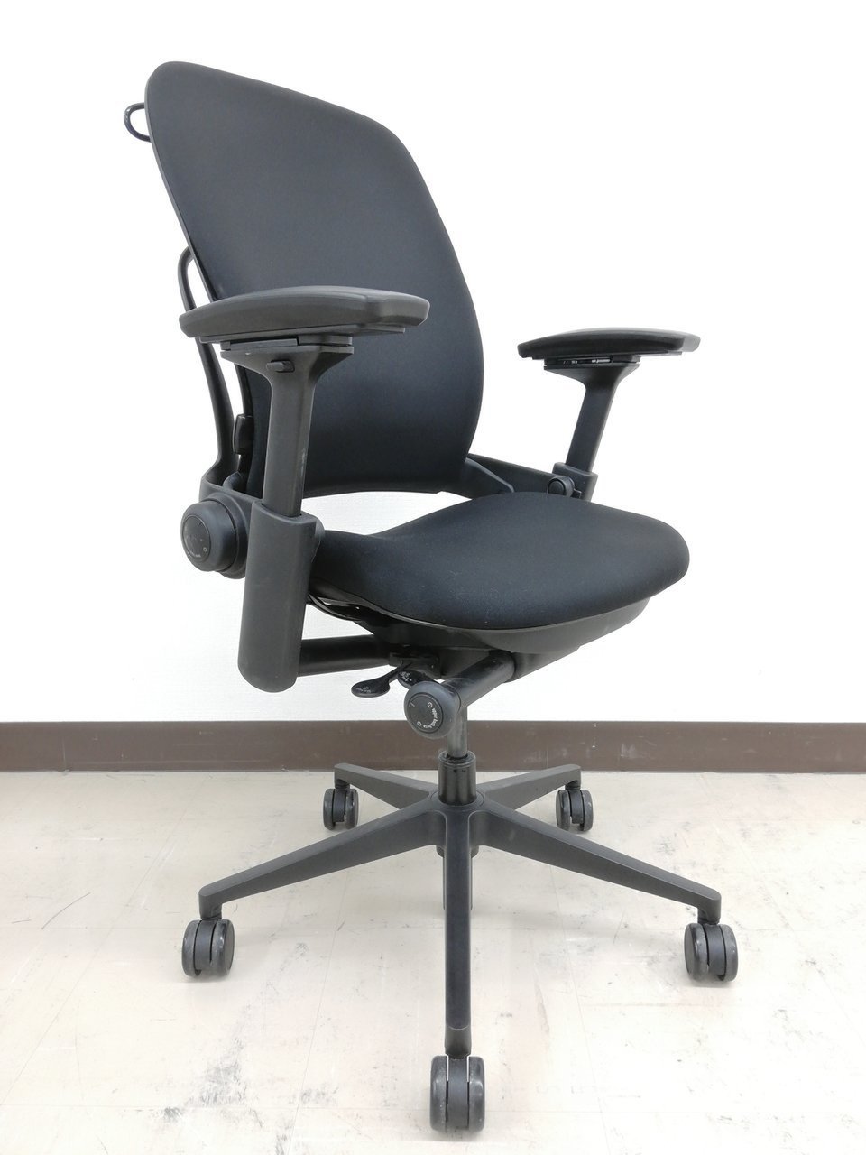 【限定1脚】ワークチェア アームレスト付 可動肘 ブラックフレーム オススメ(おすすめ) 大人気 ・Steel case/スチールケース ・Leap-v2/リープV2 ※横浜本店撮影画像※