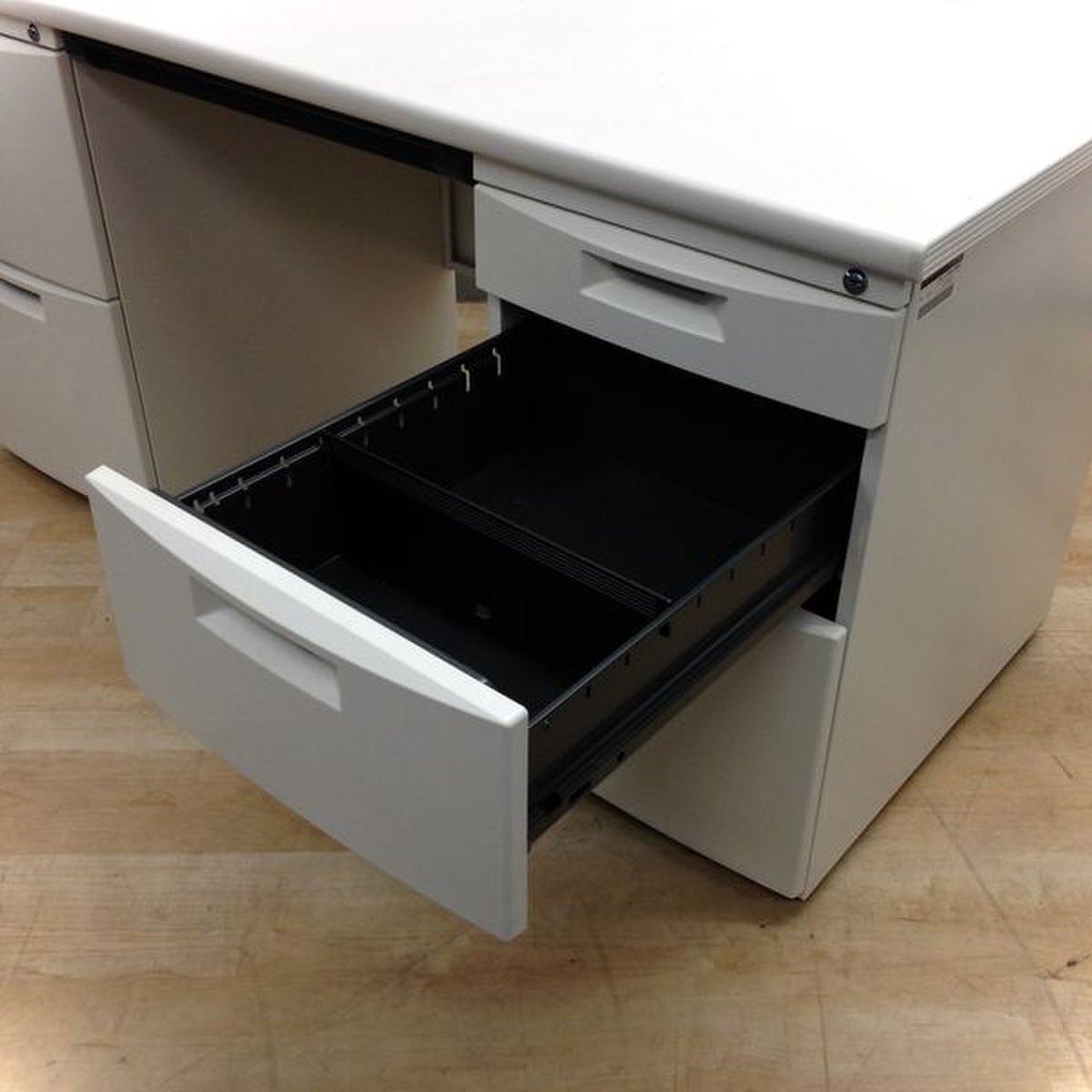 【作業スペース、収納力ともに充実!上長デスクとしてもおすすめ!】■イトーキ(ITOKI)製 CZシリーズ 両袖机 W1400×D700mm×H700mm ■ホワイト ■右袖:3段/左袖:2段 ■シリンダー錠