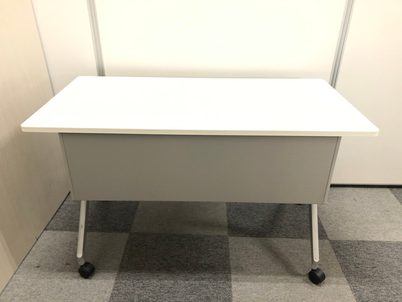 【折りたたみ収納が秀逸!スタイリッシュなデザインで高品質!】■コクヨ(KOKUYO)製 リーフラインシリーズ サイドスタックテーブル フラップタイプ W1200×D450㎜ ■キャスター・幕板付 ■ホワイト