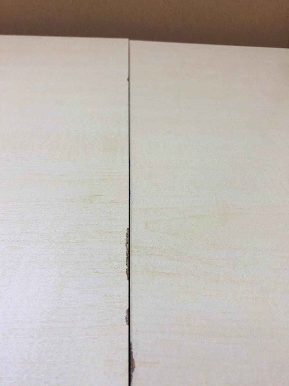 - あり黄ばみ・変色が広い範囲にうっすらある、または濃い黄ばみ・変色が一部ある。(例、天板、幕板、棚板、サイド部分、脚部等にある。)