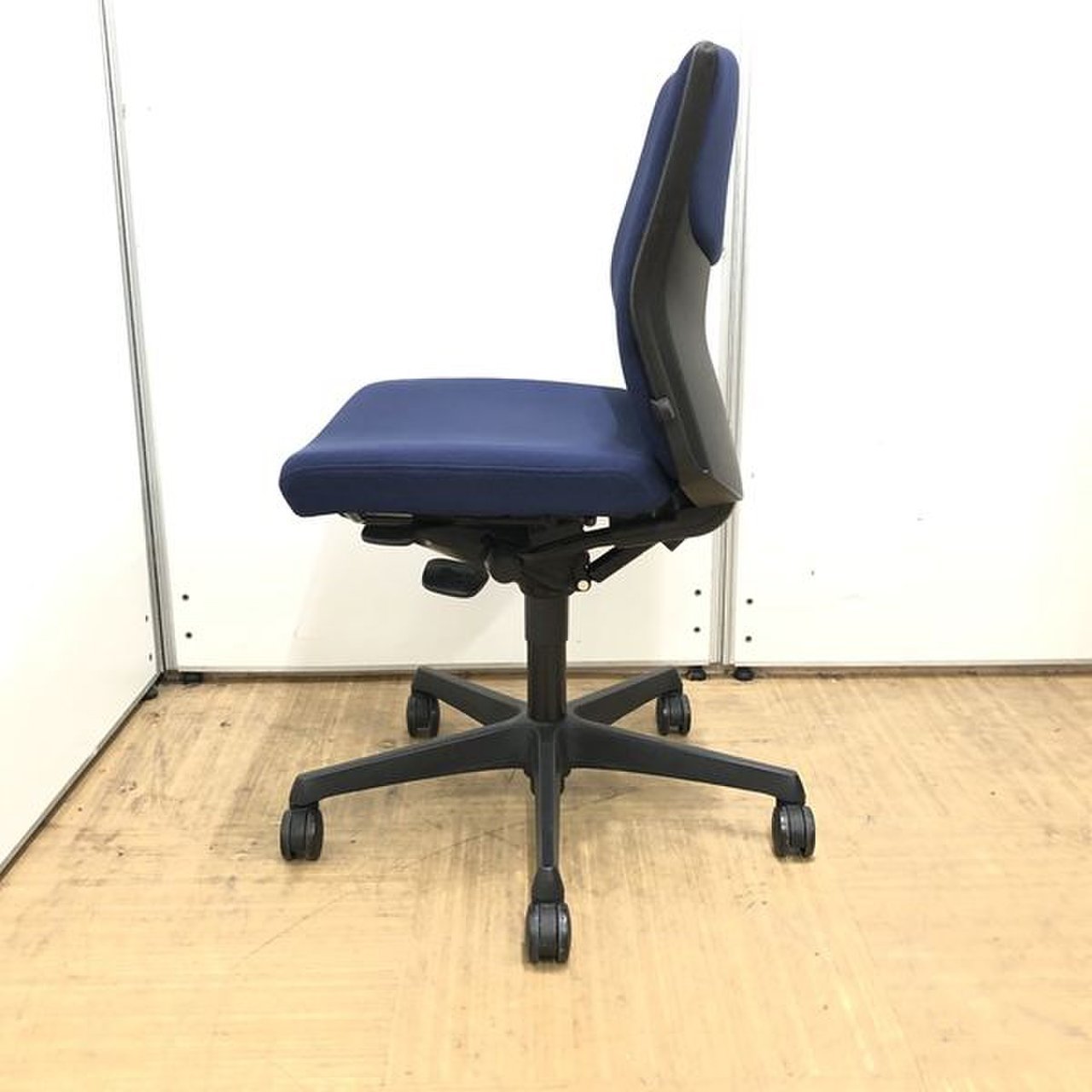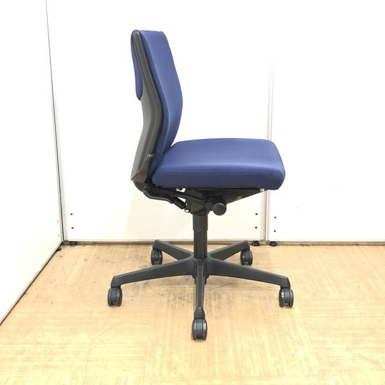 【長時間のデスクワークもランバーが快適にサポート!】■okamura(オカムラ)製 エスクードチェア ローバック 色:ダークブルー 肘無し