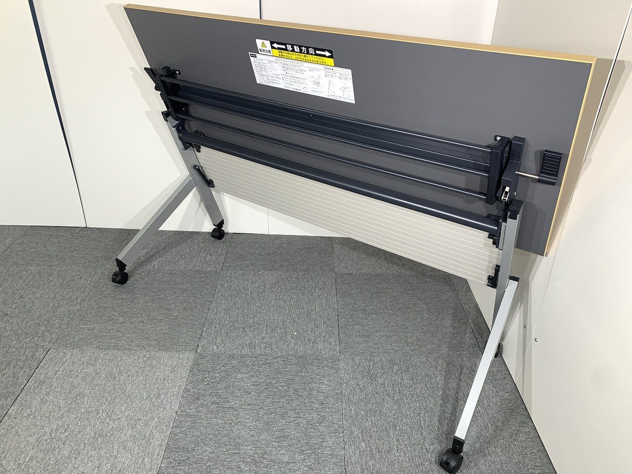 - 一部不具合あり天板歪み、アジャスター無し、キャスター使用不可ようなそのテーブルの本来の効用を果たすための機能以外の一部が使用不可な状態。(例、キャスターロッ ク機能使用不可、棚板無し等がある。)