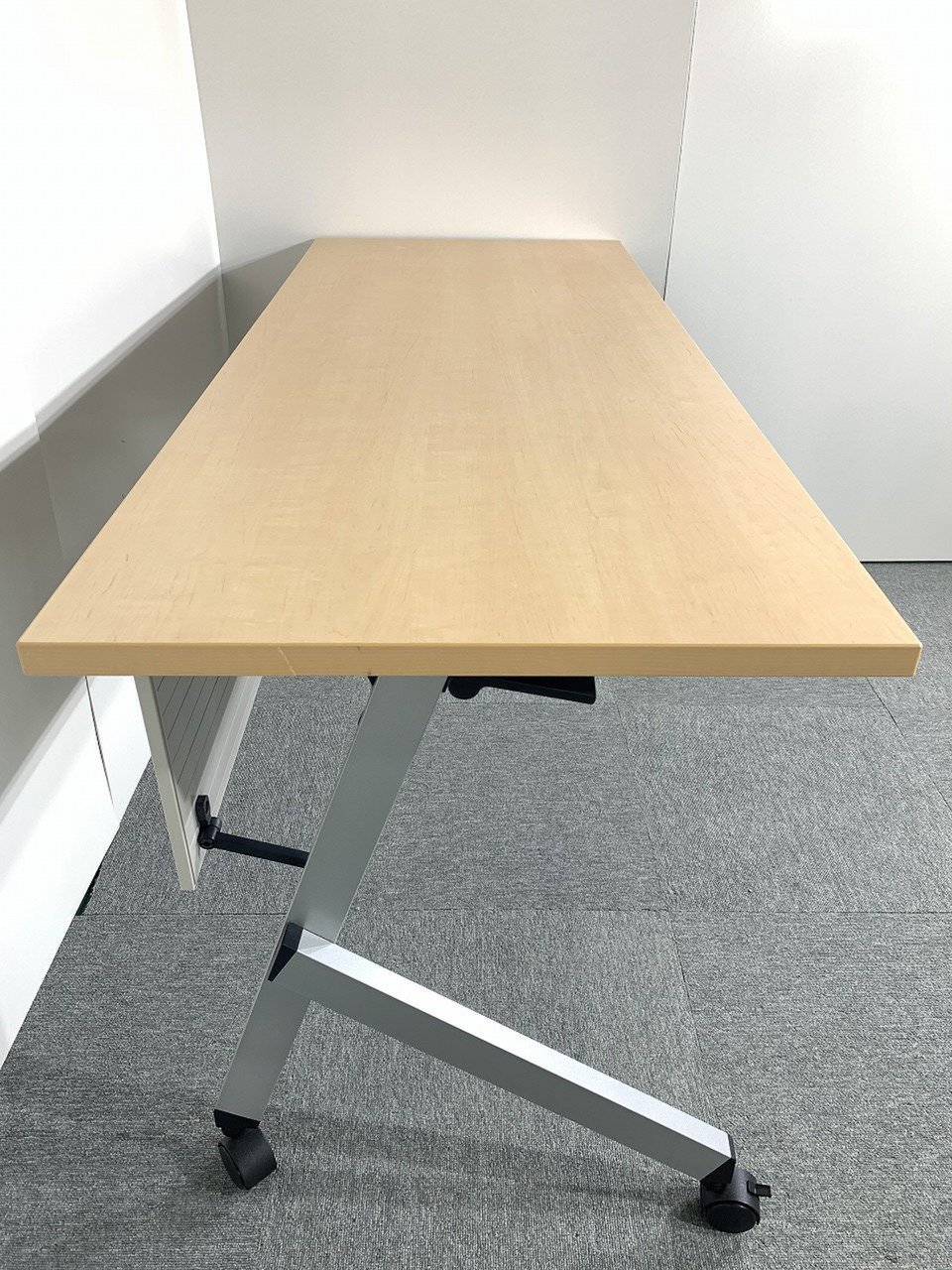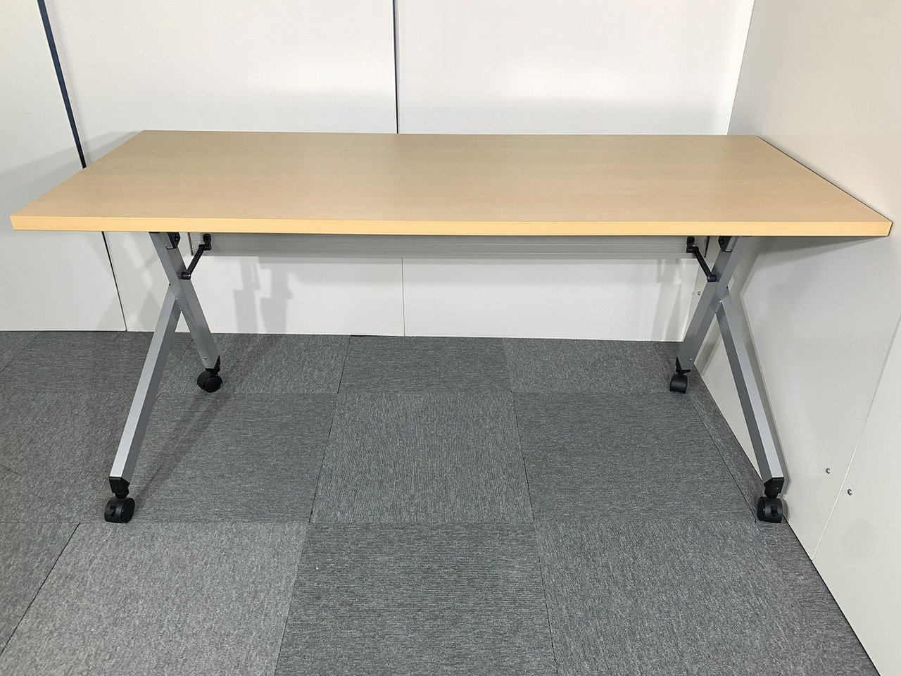 【人気商品!】【サイドスタックテーブル】木目ナチュラルカラーW1500×D600mm【折り畳み式】【幕板付】- 川崎店