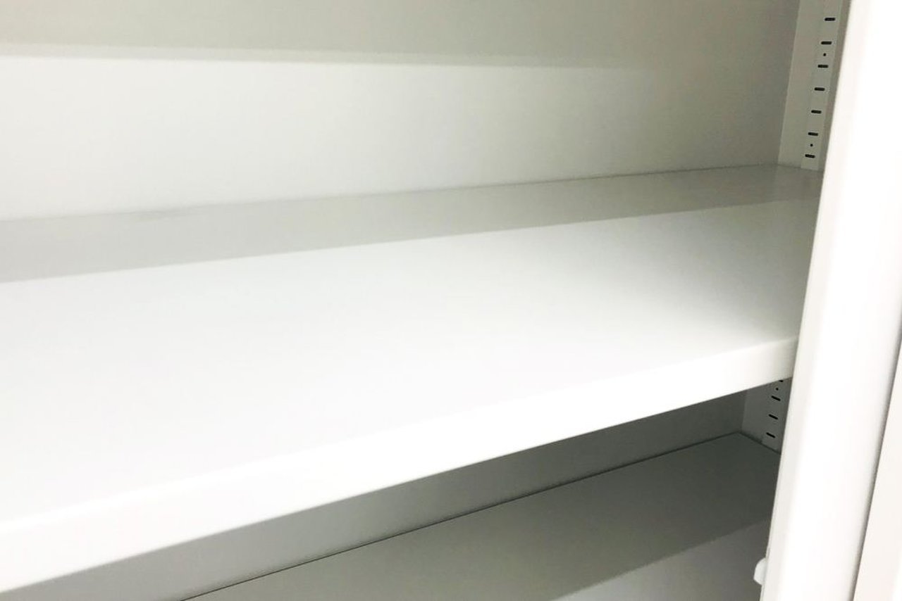 共栄工業製のホワイトカラー引き違い書庫の入荷です!!