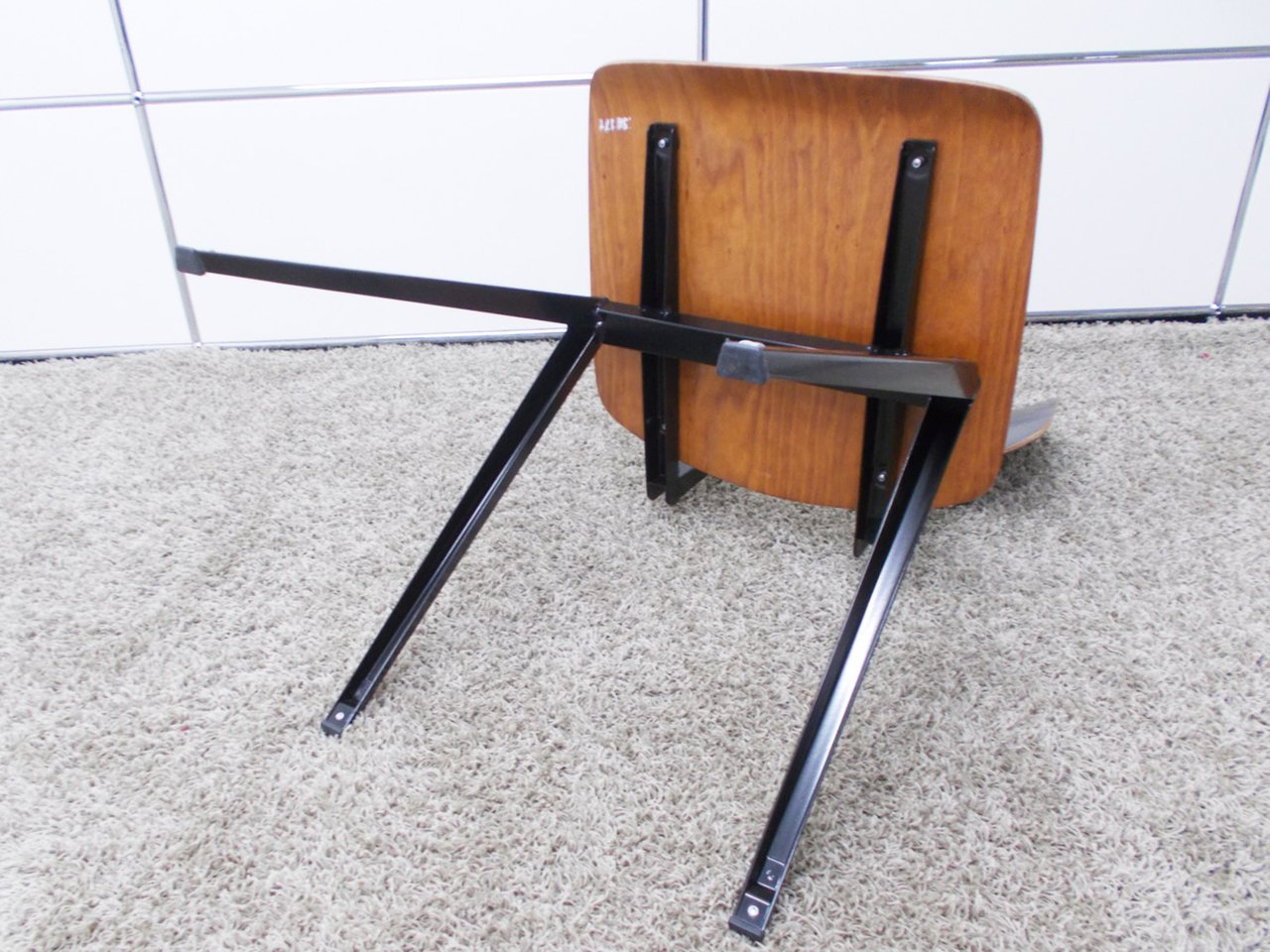 - かなり強い濃い黄ばみ・変色が商品全体にある。(例、座面・背もたれ、脚部等にある。)