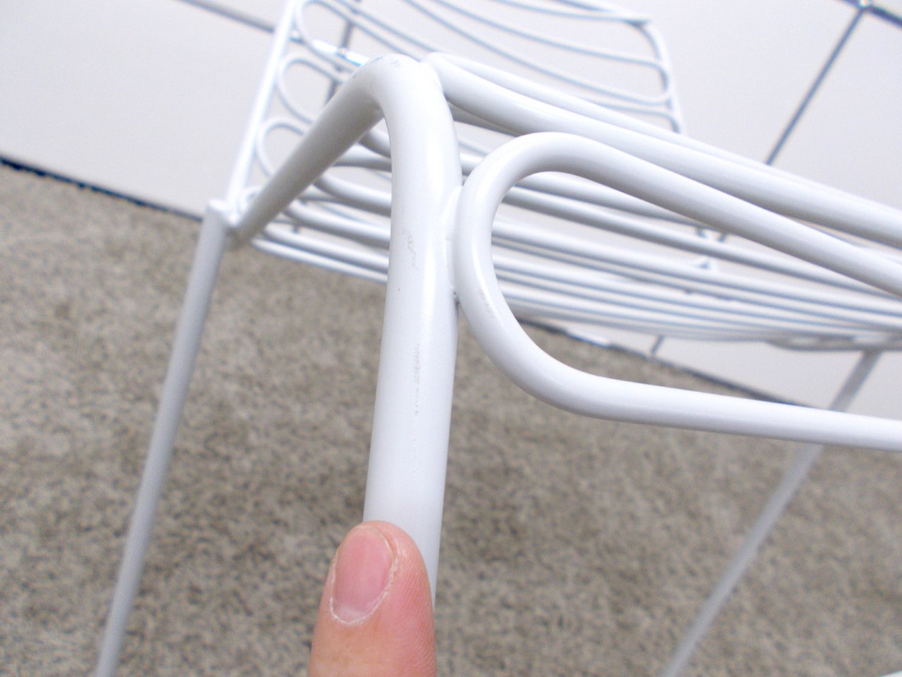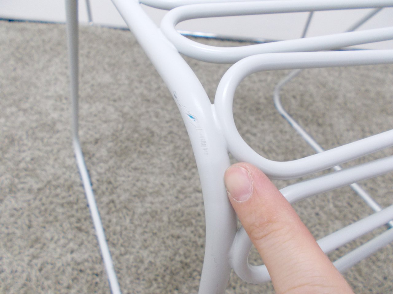 - かなり強い濃い黄ばみ・変色が商品全体にある。(例、座面・背もたれ、脚部等にある。)