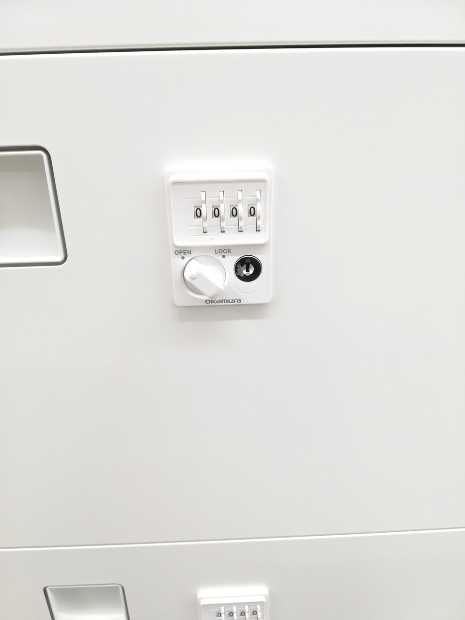 【2021年製】【脅威の状態ほぼ新品】ハイセキュリティー3段ダイヤル錠タイプ(セパレートロック)※暗証番号4桁仕様&天板付◆オカムラ製【RP】- 埼玉本店