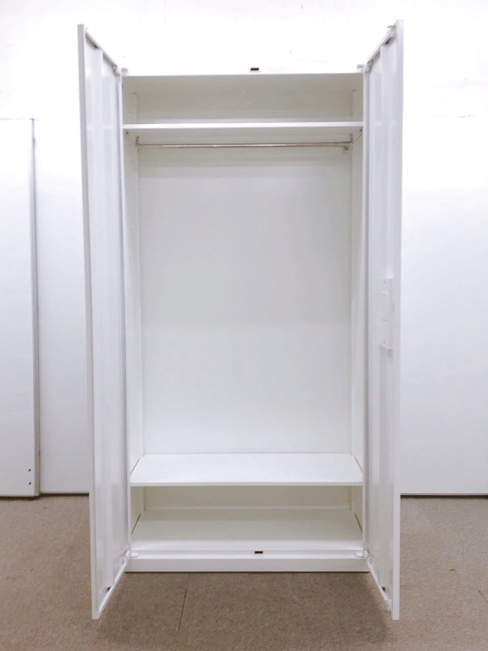 【収納力のあるワードローブで衣類をしまいましょう】 オカムラ/レクトライン/ホワイト 【4方向から開けられる便利な取っ手】- 池袋店