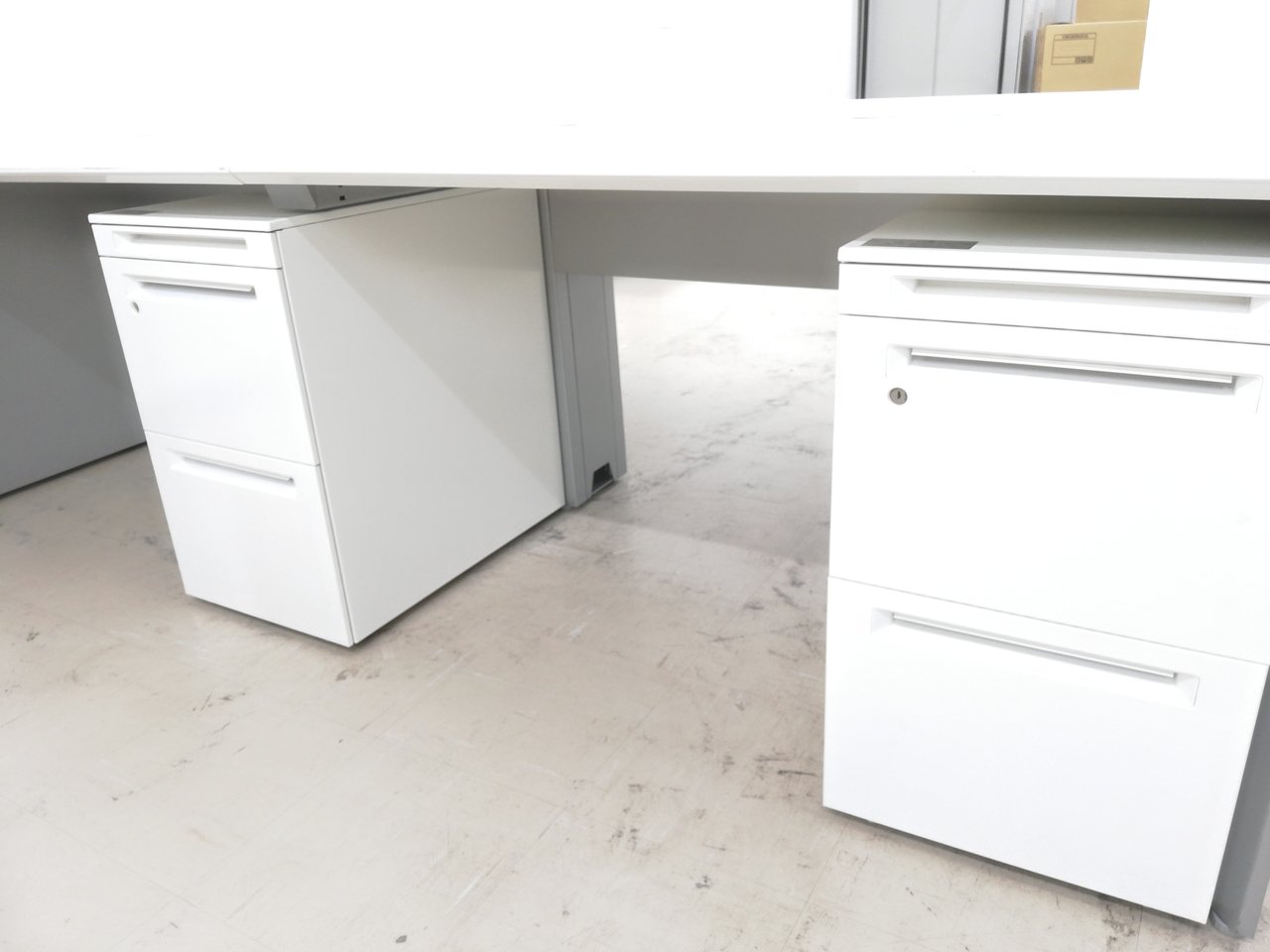 【幅2400㎜】レイアウト変更必須アイテムフリアドデスク&ワゴン4台セット◆オカムラ製天板真っ白ホワイト色(NG99)【RP】- 埼玉本店