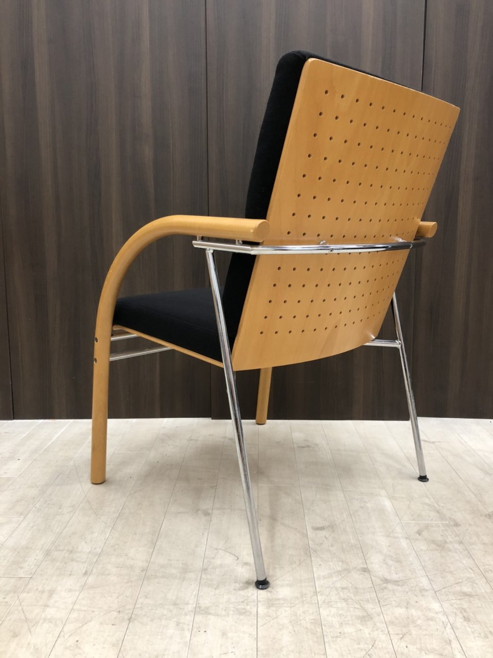 手に吸いつくような木のひじ掛けも特徴的なチェア