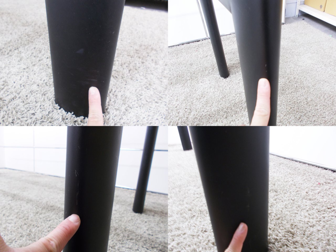 - 目立つ箇所あり傷・凹みが多数、深い傷・凹みが一部ある。(例、天板、幕板、棚板、サイド部分、脚部等にある。)