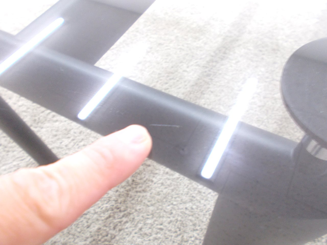- かなり強い濃い黄ばみ・変色が商品全体にある。(例、天板、幕板、棚板、サイド部分、脚部等にある。)