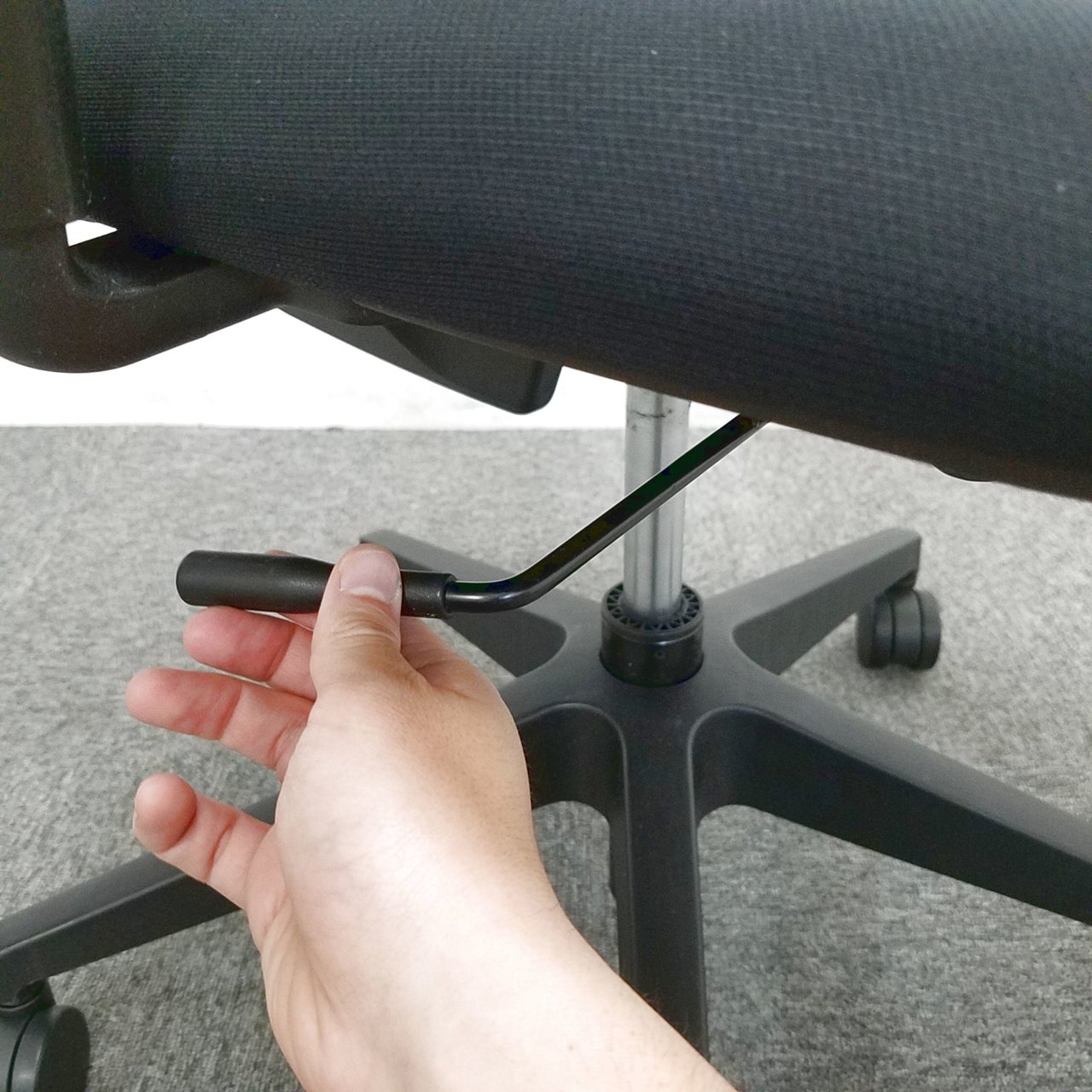 スムーズな動きのガススプリングにより、上下100㎜のロングストロークを実現。身長体格に応じた調整が可能です。
