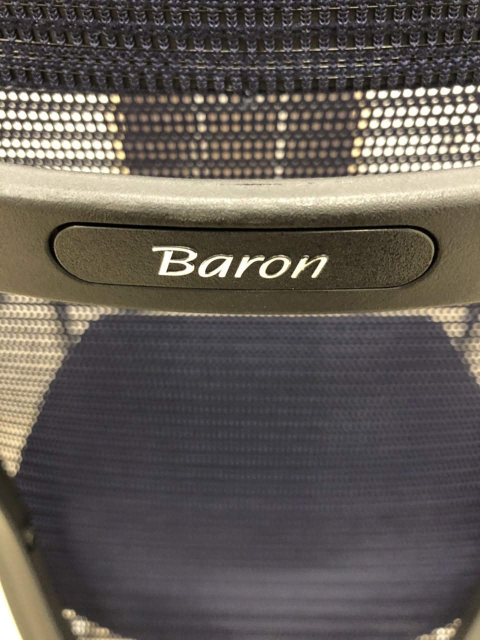 発売当時、既に人気を博していたオカムラの高級チェア、コンテッサから手元で座高調整ができるスマートオペレーション機能を取り除くなどしてリーズナブルにしたのがバロンです。その際に少しだけコンパクト化されました。そのことが、日本人の体格、日本のオフィス、家庭環境に適し、国内で多くのシェアを獲得する要因の一つになったのではないかと思います。
