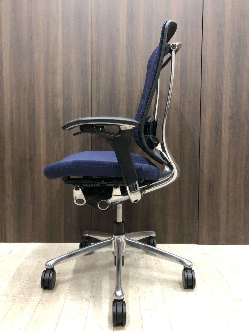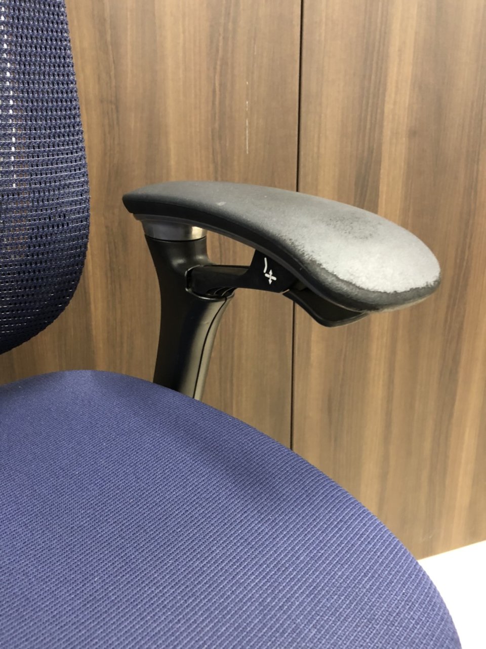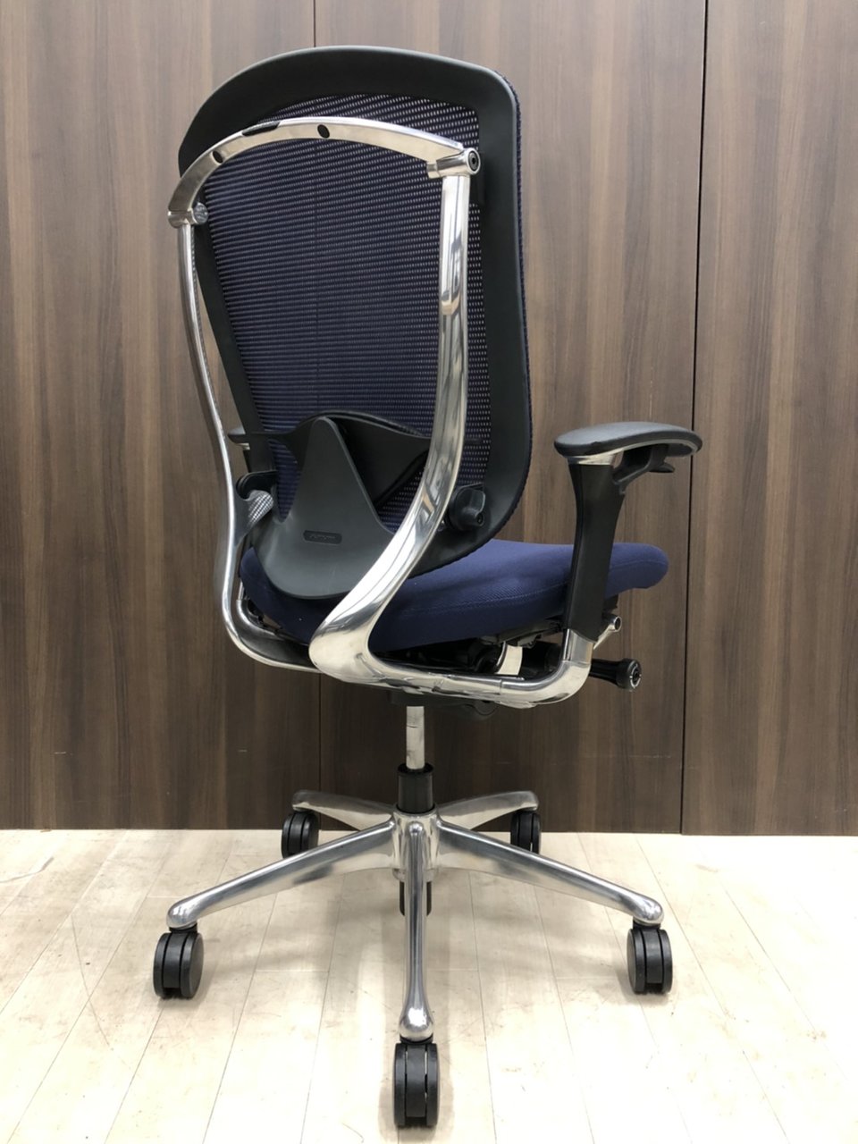【オカムラ製の最高級チェアが残り1脚限りです!!】オフィスバスターズ 東大阪店 オカムラ製 コンテッサ シリーズ ダークブルー アジャストアーム※可動肘 背/座面メッシュ ランバー 世界で認められた革新的タスクチェア!人間工学に基づいた快適な座り心地を実現! 肘付きハイバックチェア!! 中古 外部倉庫品