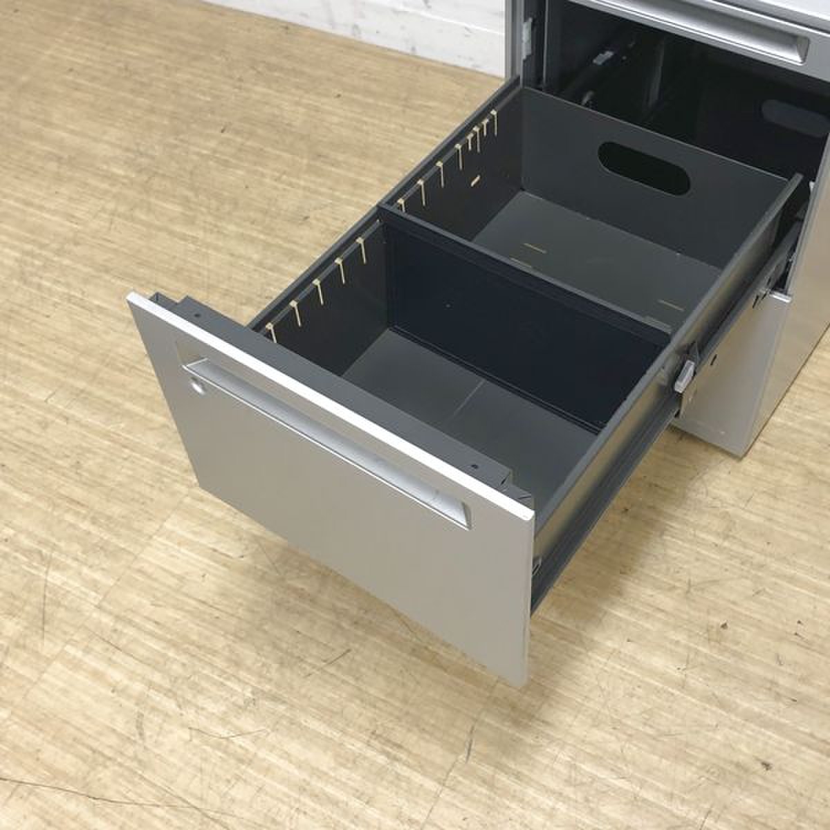 【大量入荷(倉庫にて保管)】フロント把手 シリンダー錠 スキップシルバー色 A4ファイル×2段+ペントレーの3段収納 鍵1本付き オカムラ プロユニット- 名古屋千種店