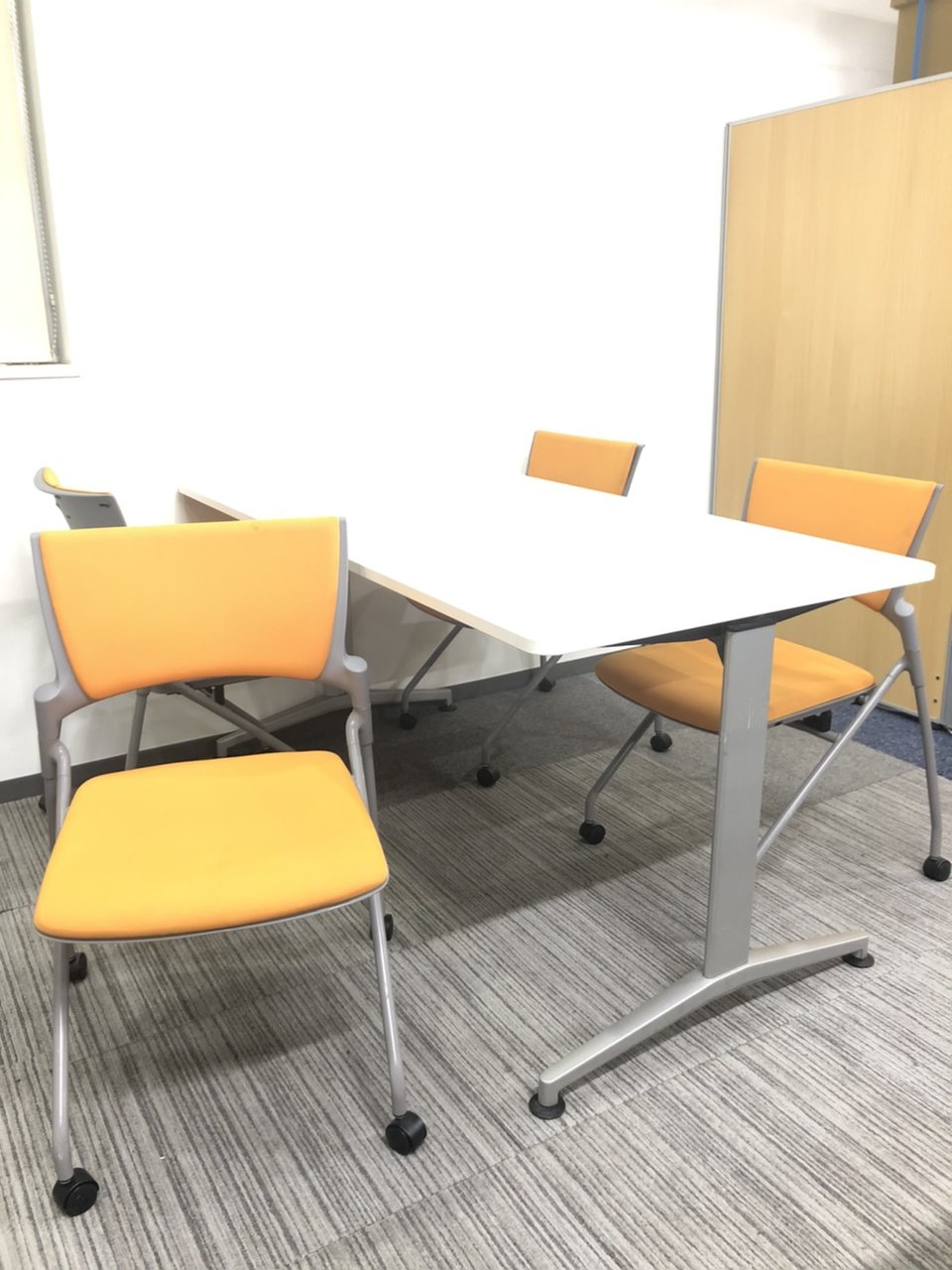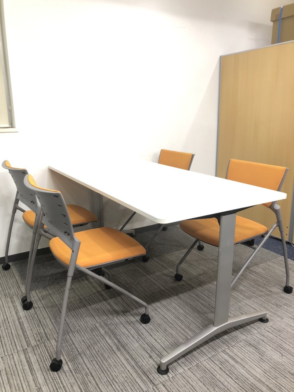 【セット価格】ホワイトのミーティングテーブル+オレンジのミーティングチェア|イトーキ【中古家具】【新大阪】【北摂】【淀川区】【北区】- 新大阪店