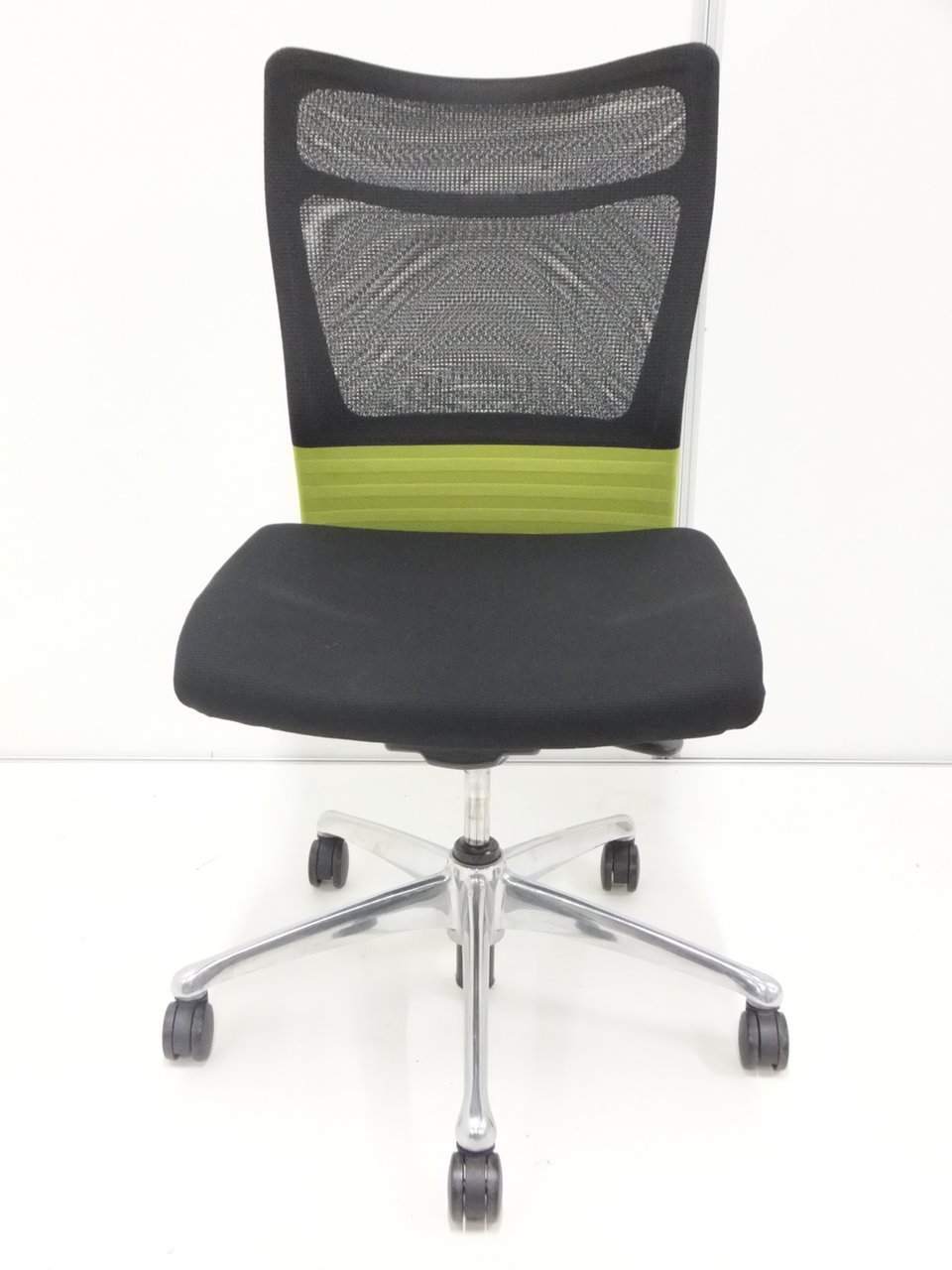 【人気商品入荷!】オカムラ製 フィーゴ(シームレスグリーン) 肘無しチェア【背面メッシュ】【広めの座面】【RP】- 品川・三田店