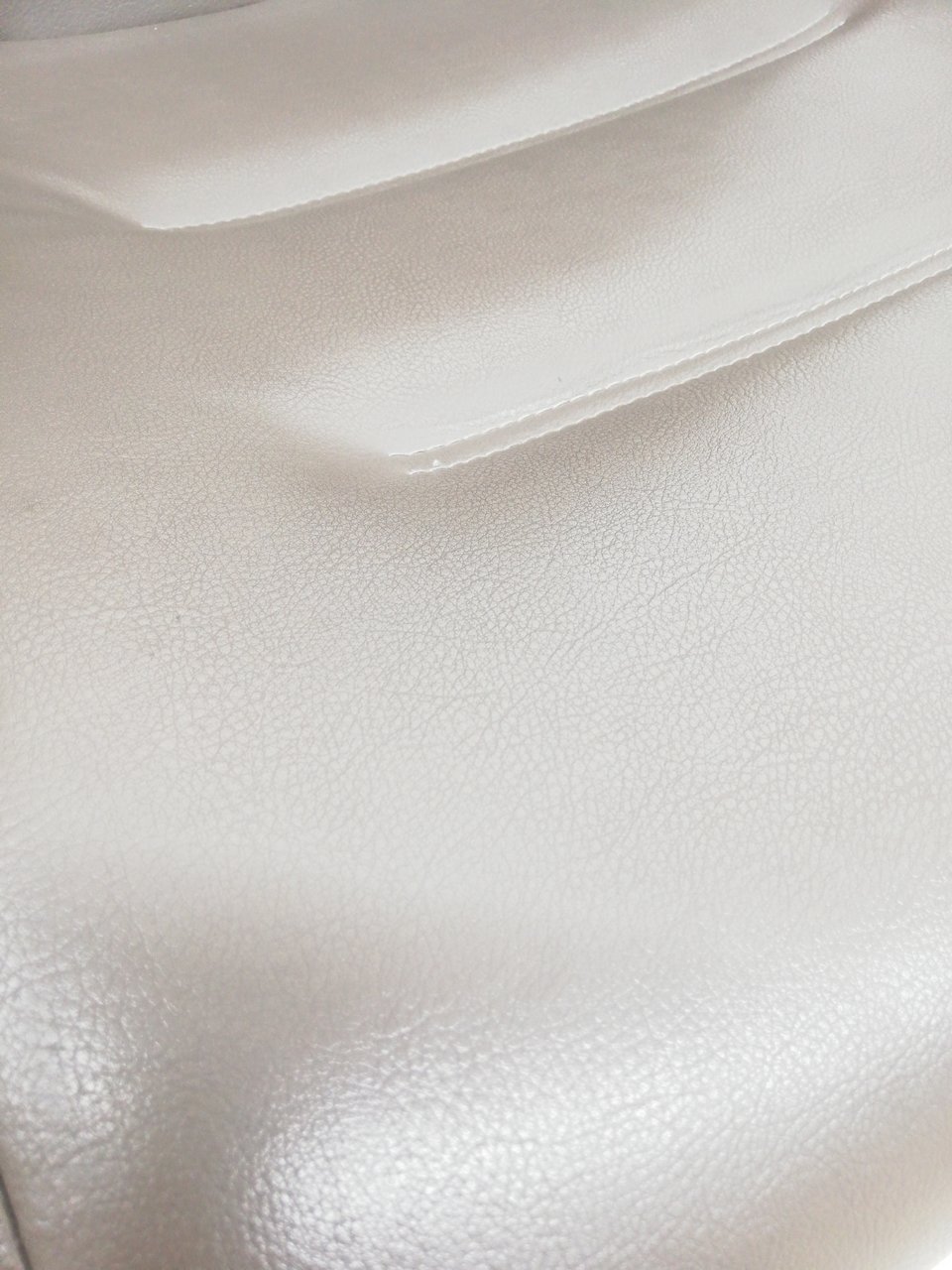 - かなり強い濃い黄ばみ・変色が商品全体にある。(例、座面・背もたれ、脚部等にある。)