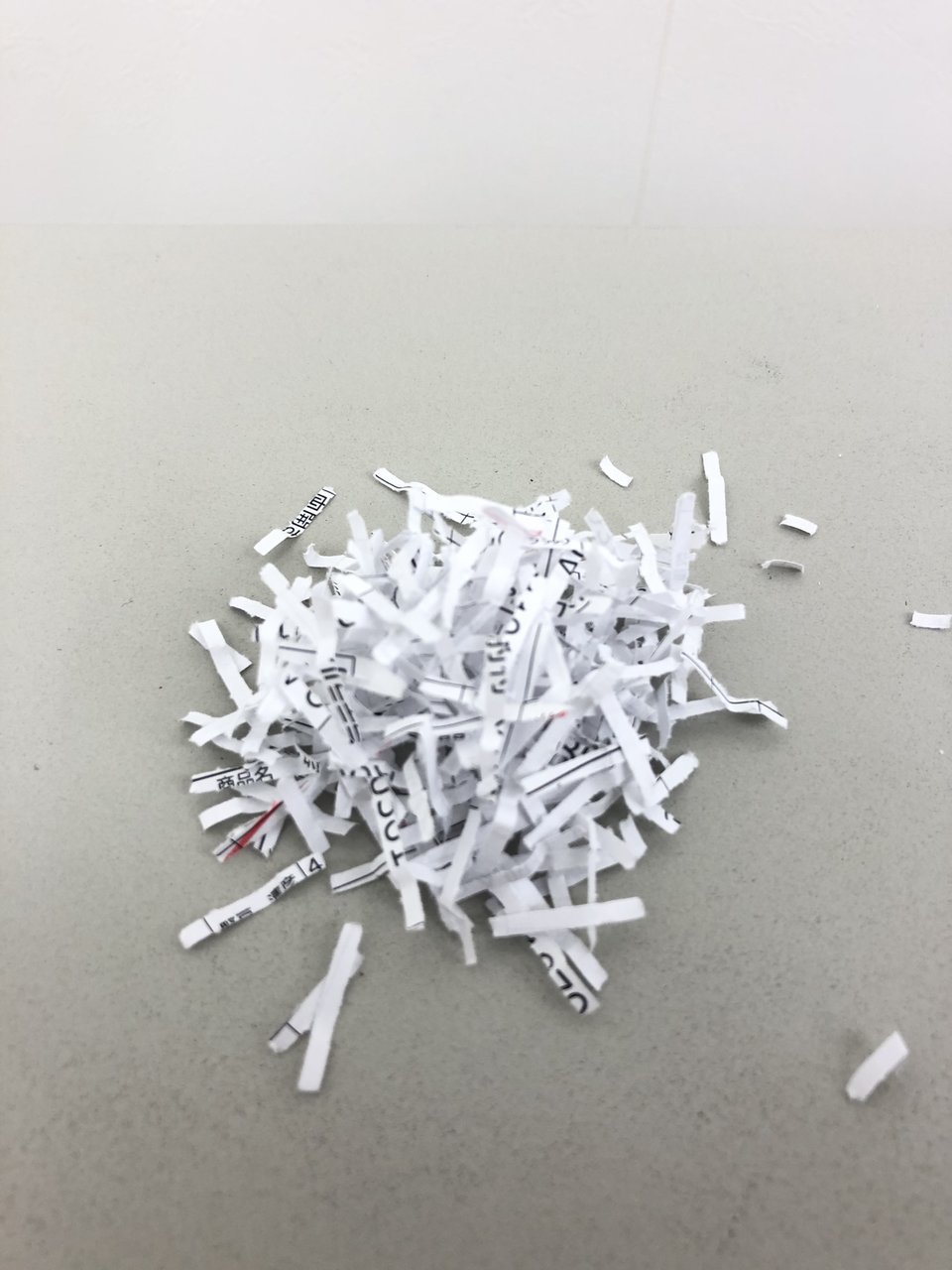 細かな長方形の紙片にします。縦だけに切るストレートカットに比べ機密性が高く、