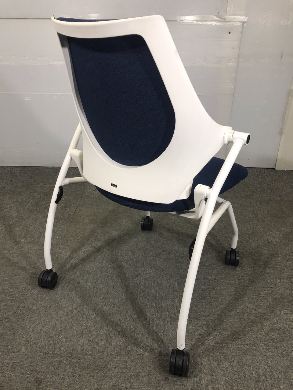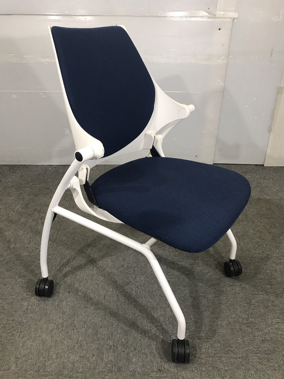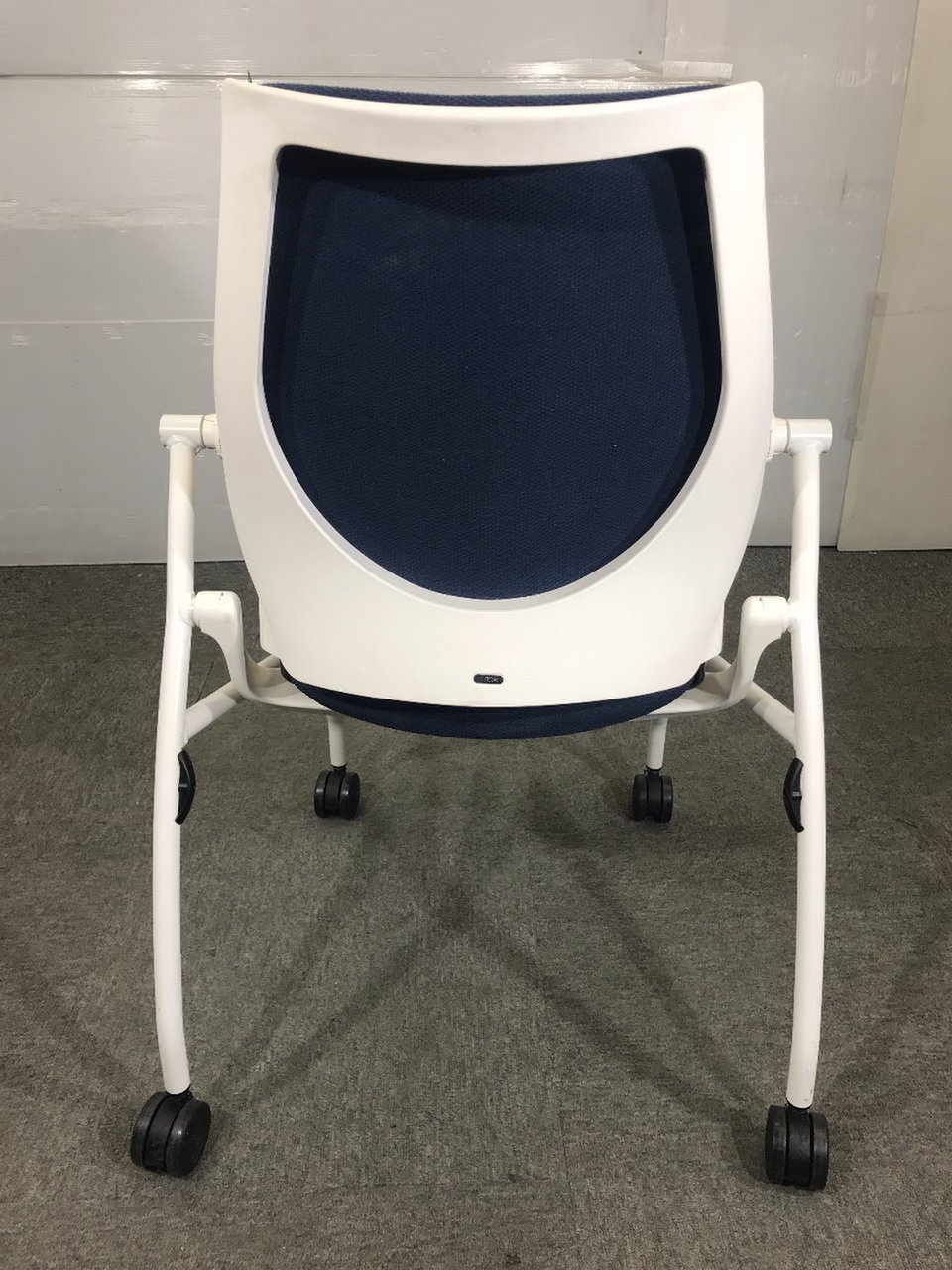 【疲れにくく快適な座り心地を追求!】■イトーキ(ITOKI)製 イプサシリーズ ネスティングチェア ミーティングチェア キャスター付 ■ネイビーブルー×ホワイトシェル 【平行スタックで省スペース!】