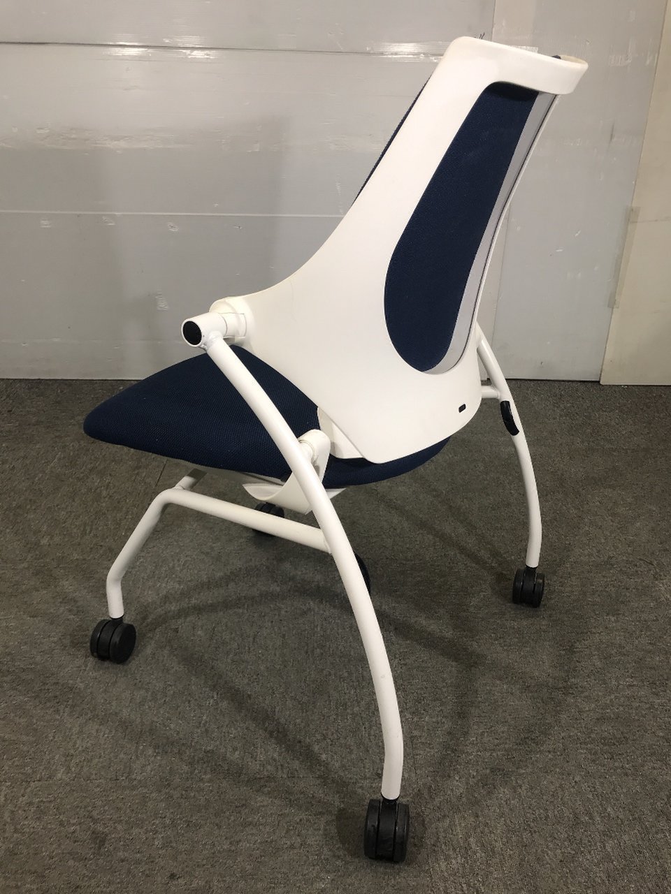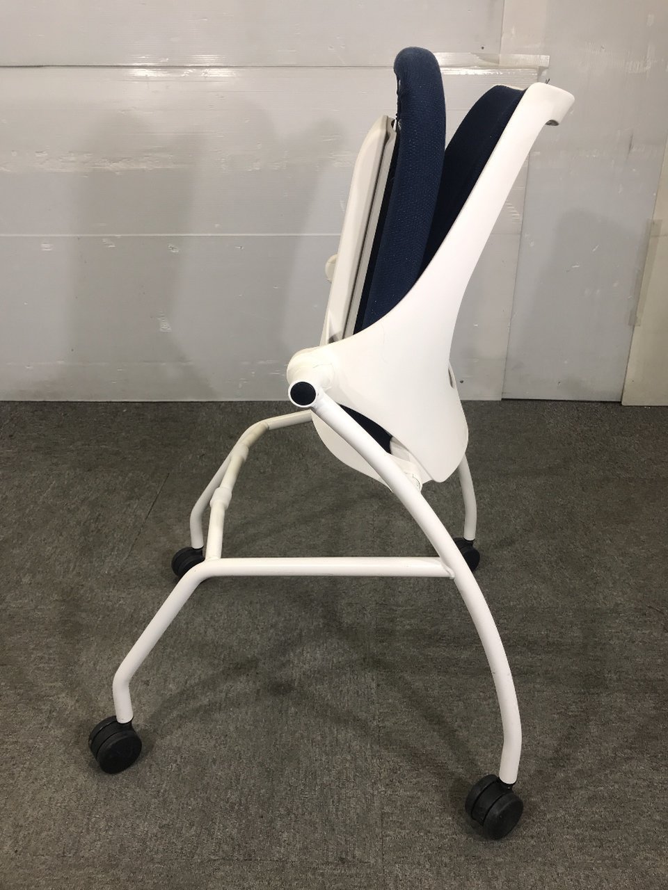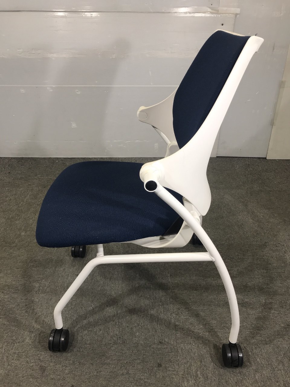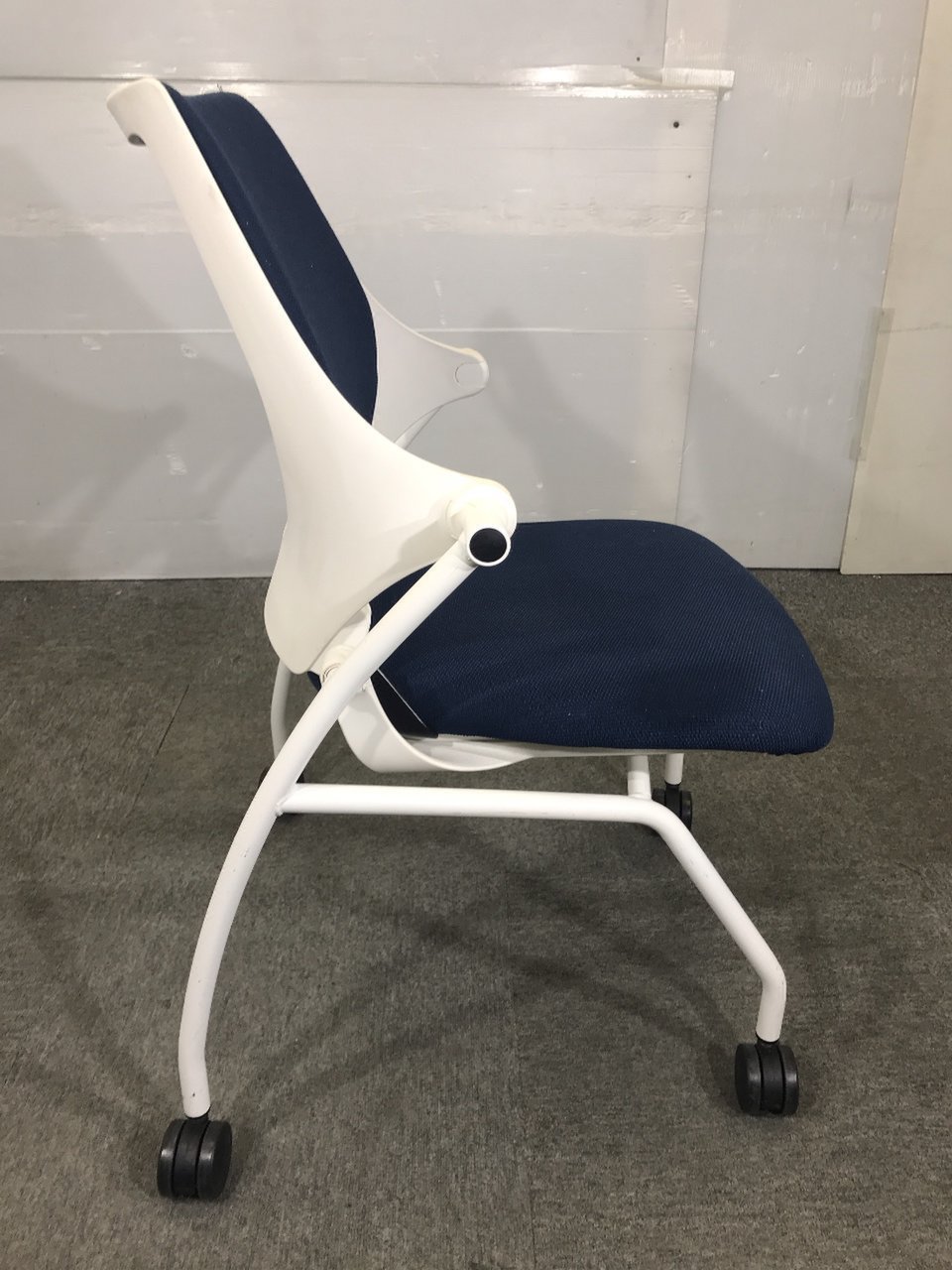 【疲れにくく快適な座り心地を追求!】■イトーキ(ITOKI)製 イプサシリーズ ネスティングチェア ミーティングチェア キャスター付 ■ネイビーブルー×ホワイトシェル 【平行スタックで省スペース!】