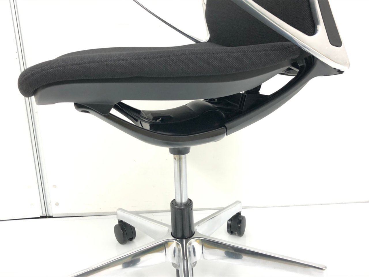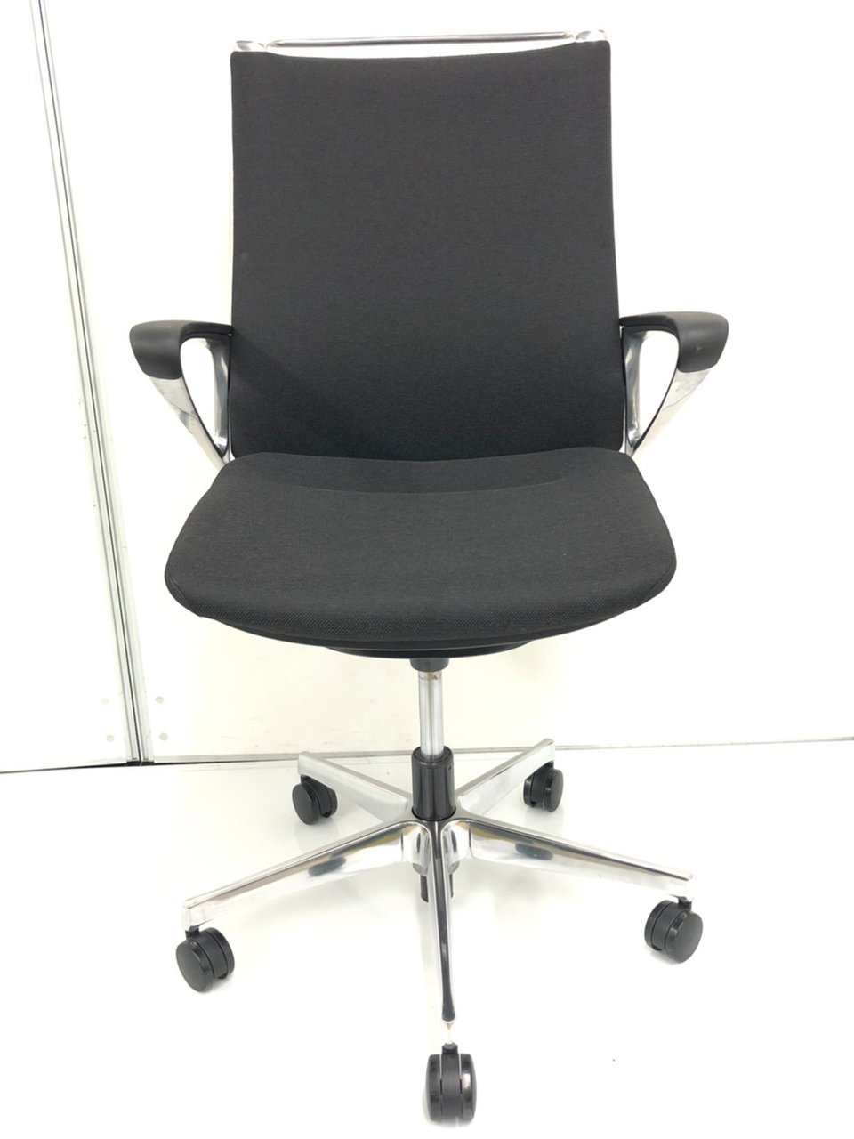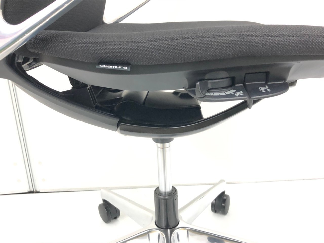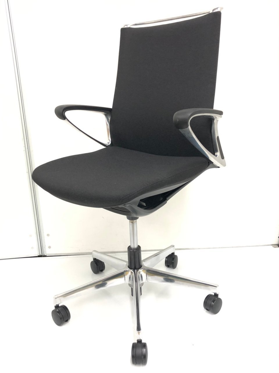 【在庫入替セール】オカムラ モード デザインアーム搭載 ミドルバック ブラック×アルミ脚 張地:クロス(プレーン) 高いデザイン性×シンプルかつ操作性のある機能
