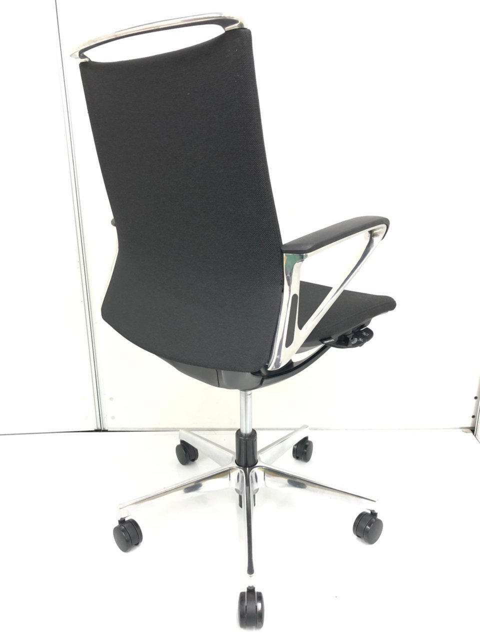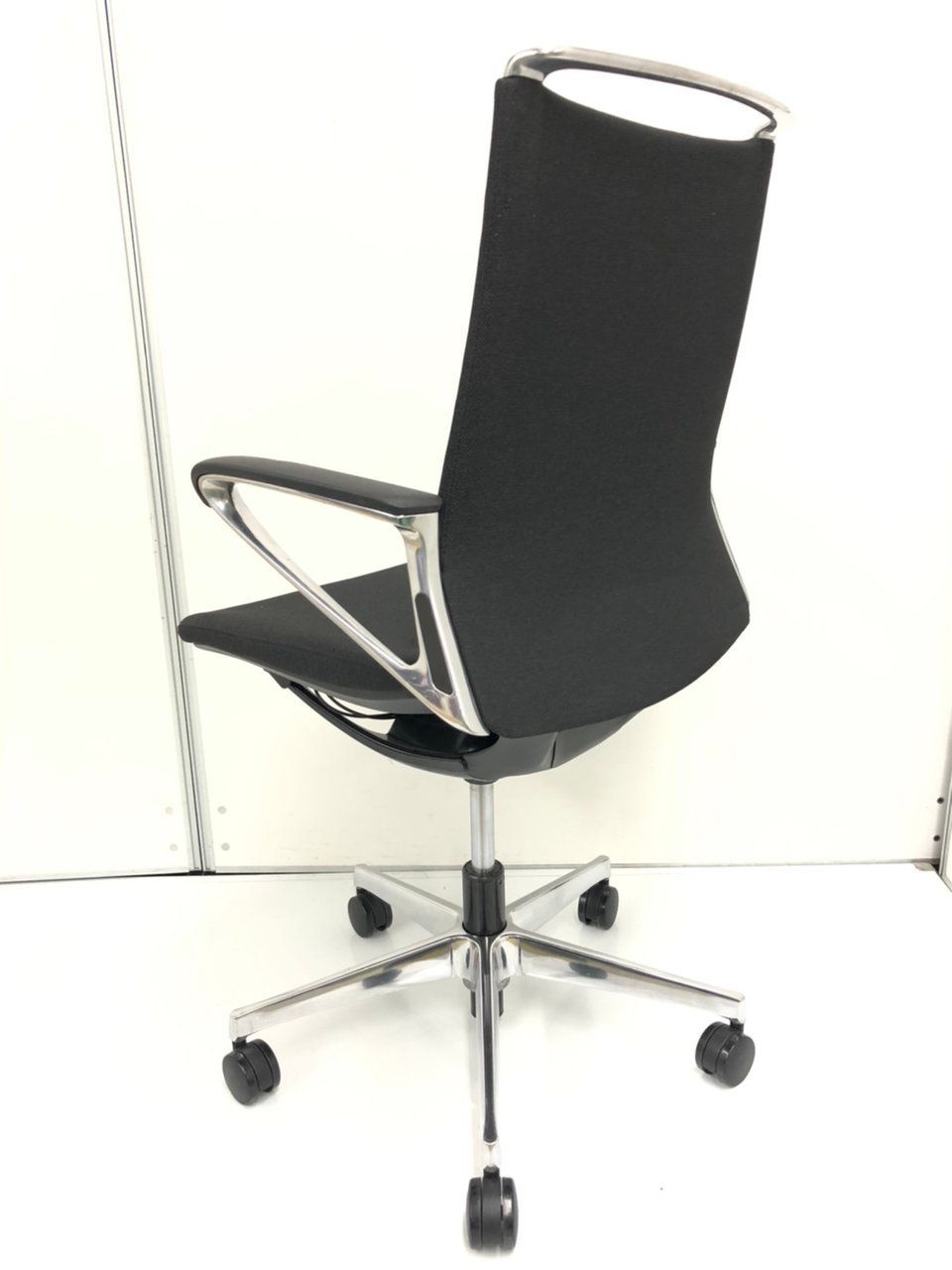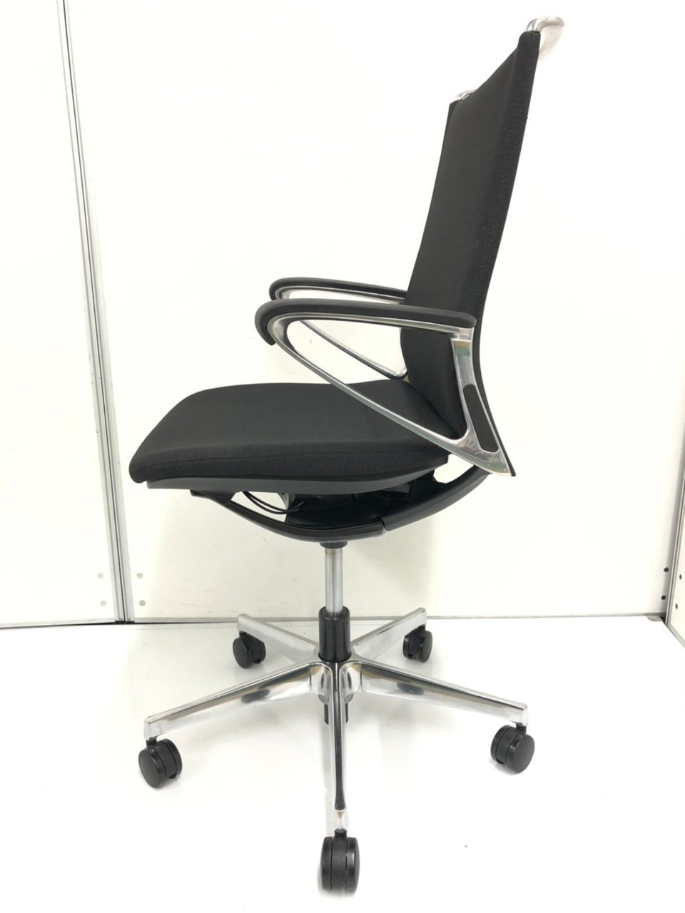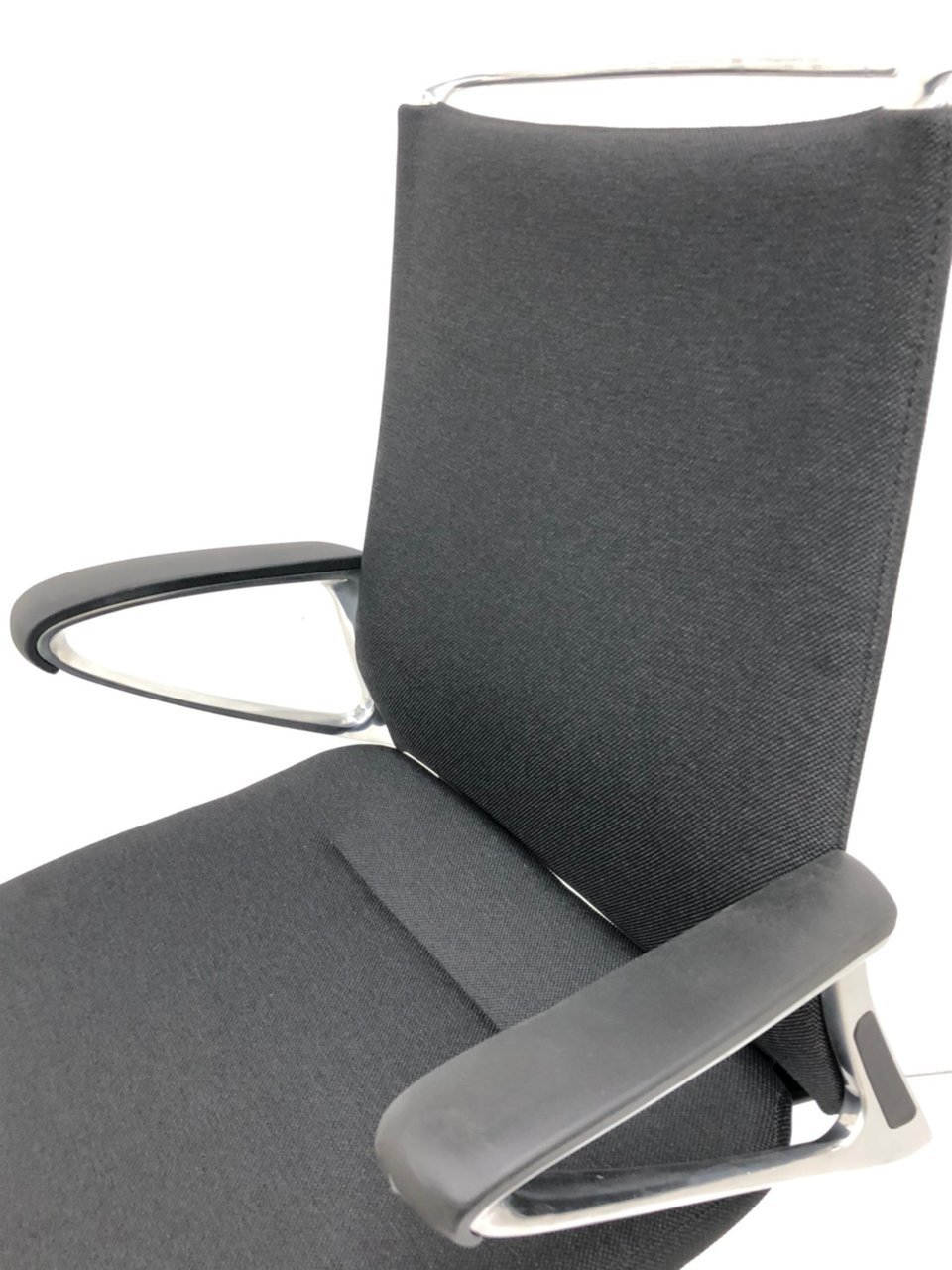 【在庫入替セール】オカムラ モード デザインアーム搭載 ミドルバック ブラック×アルミ脚 張地:クロス(プレーン) 高いデザイン性×シンプルかつ操作性のある機能