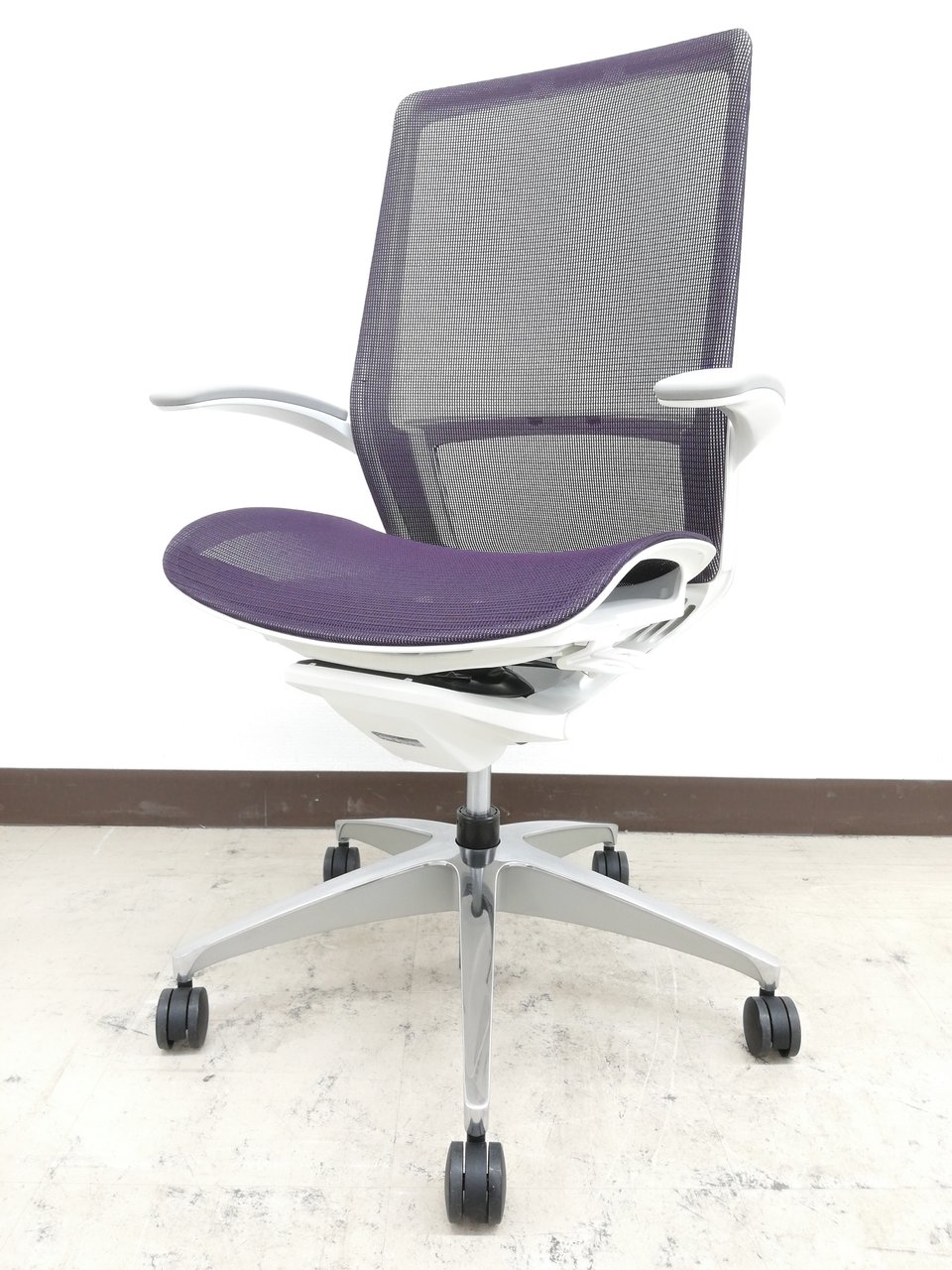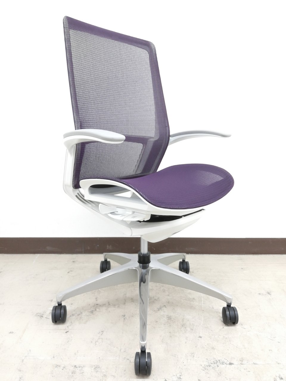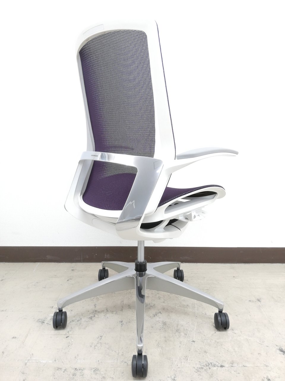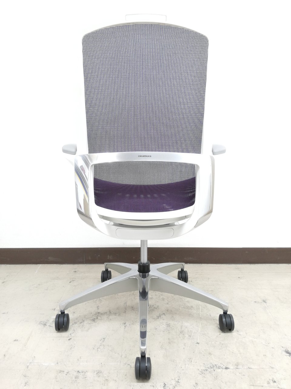 【2019年製】状態極上ほぼ新品オカムラ特製フィノラ(Finora)チェア※デザインアーム(固定肘掛け)&メッシュ座面:パープル色【RP】- 埼玉本店