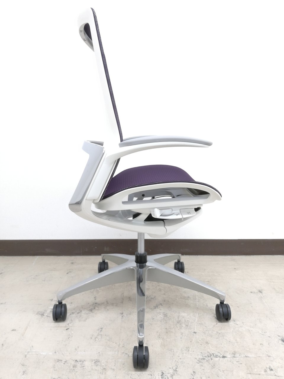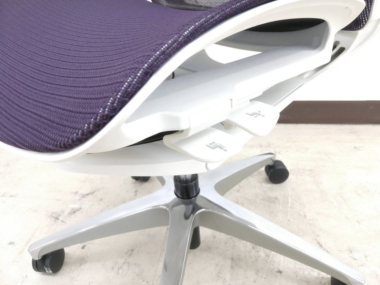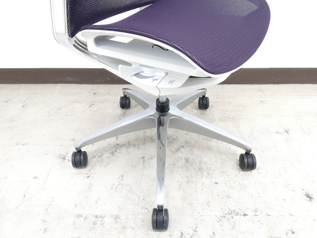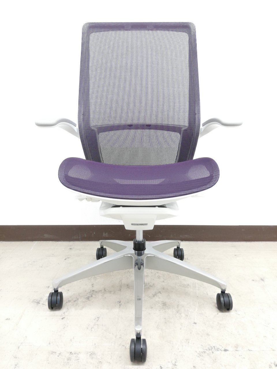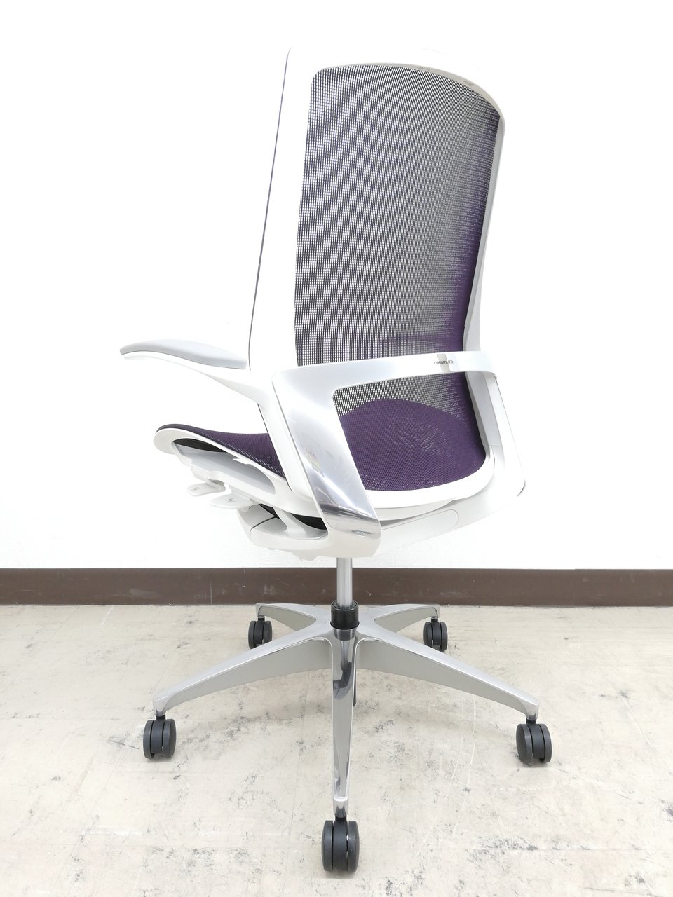 【2019年製】状態極上ほぼ新品オカムラ特製フィノラ(Finora)チェア※デザインアーム(固定肘掛け)&メッシュ座面:パープル色【RP】- 埼玉本店
