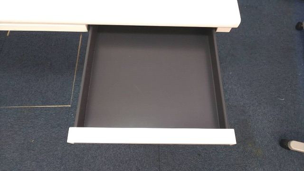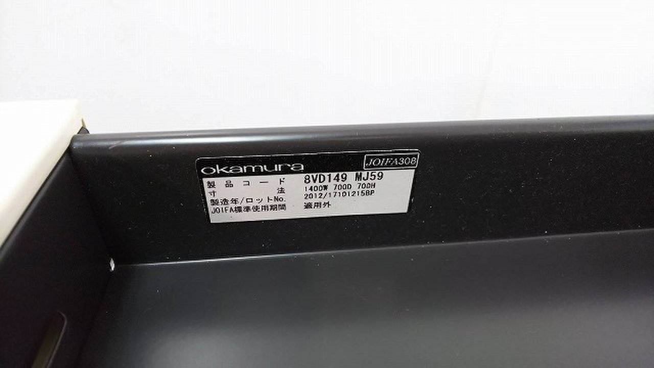 【在庫入替の為、5台限定でお安く!】【ワークスペース広々!幅1400㎜のホワイトカラーの平机!】■オカムラ(okamura)製 ヴィラージュ(VILLAGE)デスク 平机 引き出し付き W1400×D700㎜ ■ホワイト ※日焼け有■弊社使用欄【A01018605】【T10】【T12】