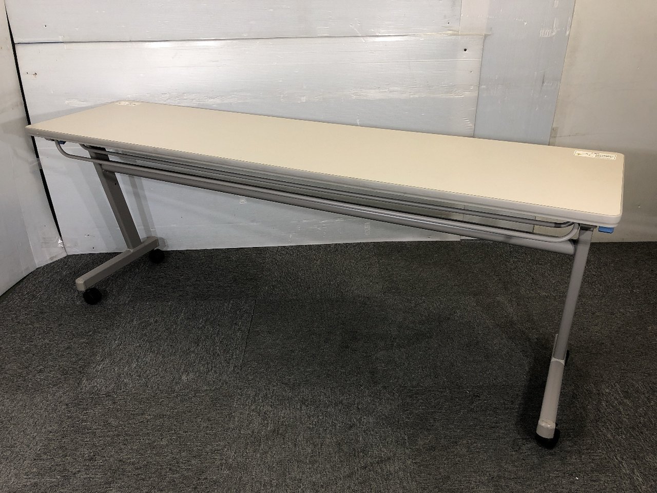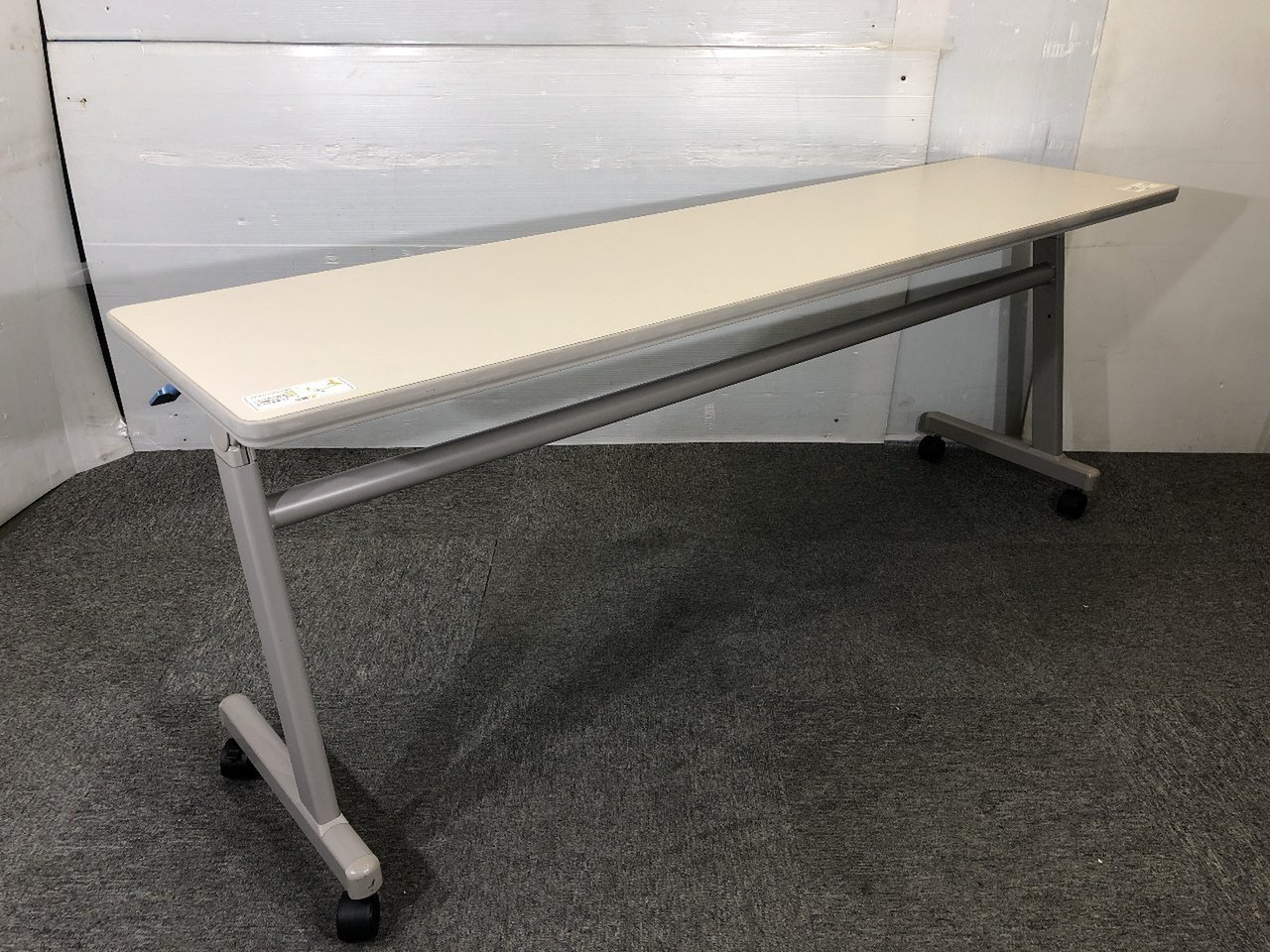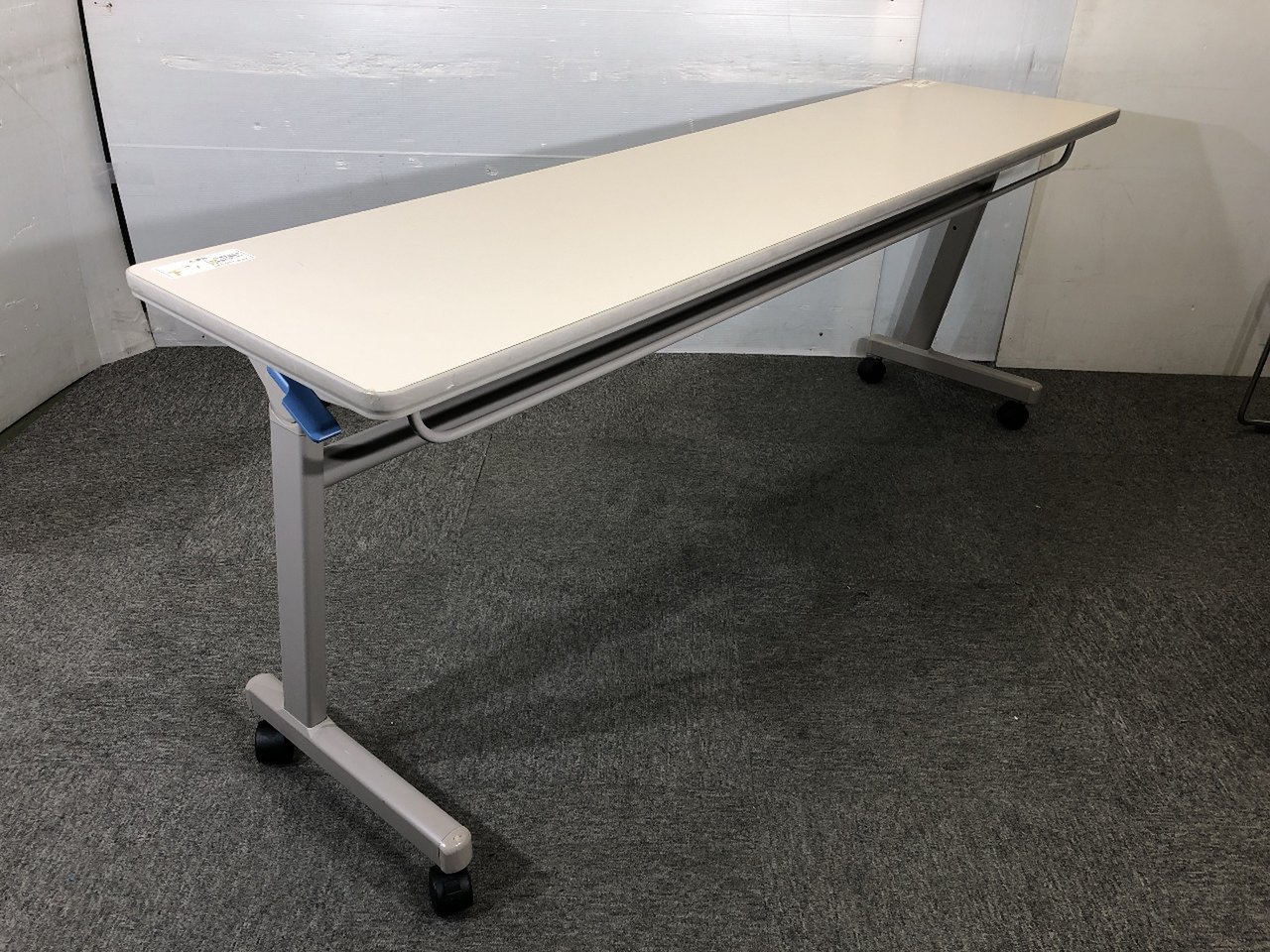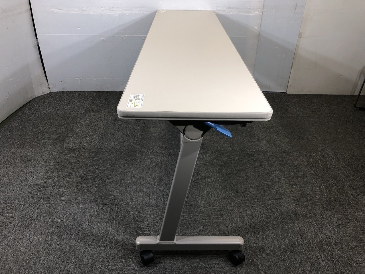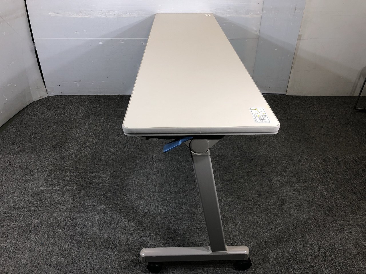 - 一部不具合あり天板歪み、アジャスター無し、キャスター使用不可ようなそのテーブルの本来の効用を果たすための機能以外の一部が使用不可な状態。(例、キャスターロッ ク機能使用不可、棚板無し等がある。)