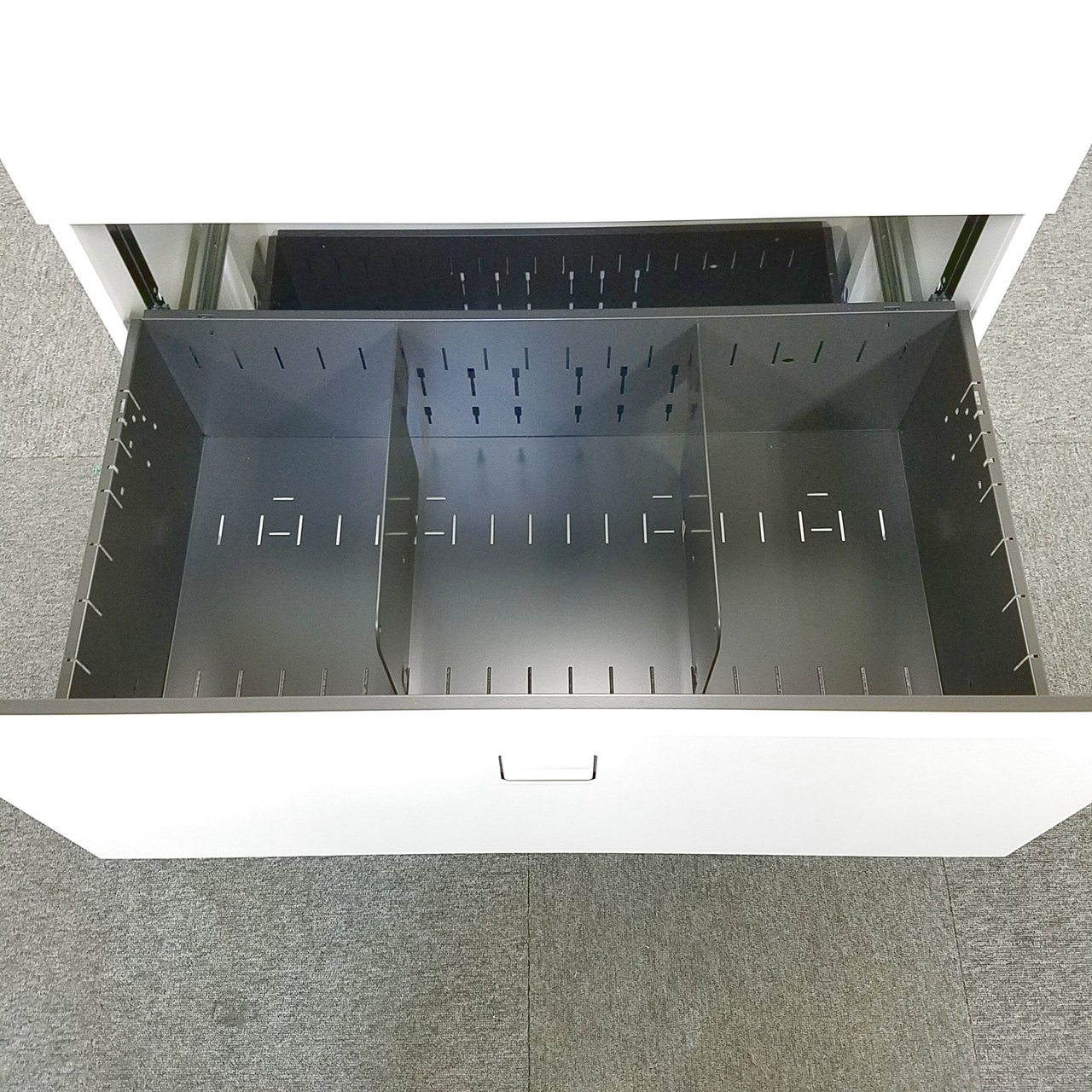 【使いやすさで選ぶならコレ!大容量の三段キャビネット】■オカムラ(Okamura)製 レクトラインシリーズ(Rectline) 3段ラテラル書庫 ローキャビネット ■天板付き ■シリンダー錠 ■ホワイト
