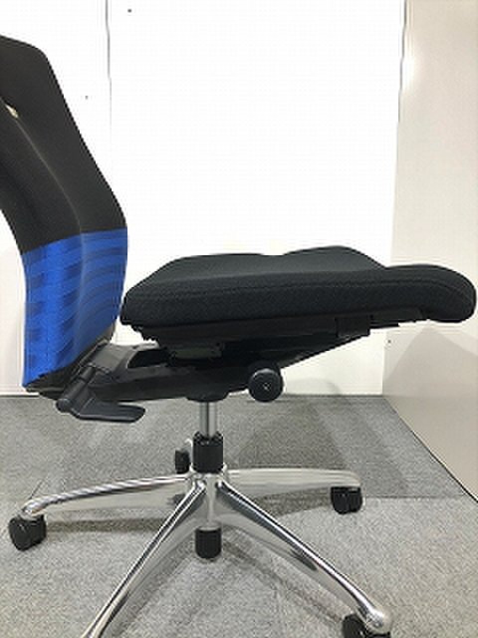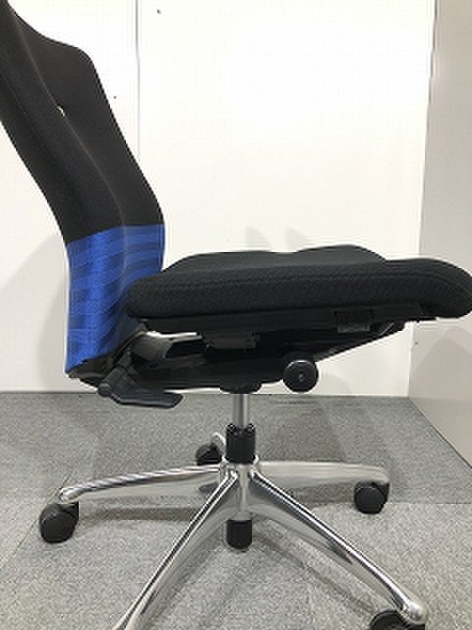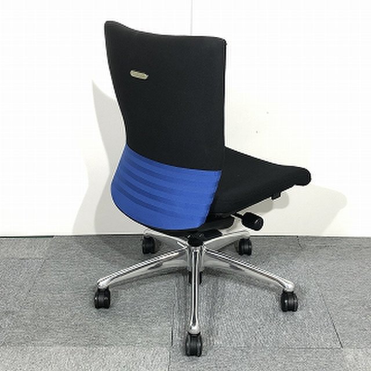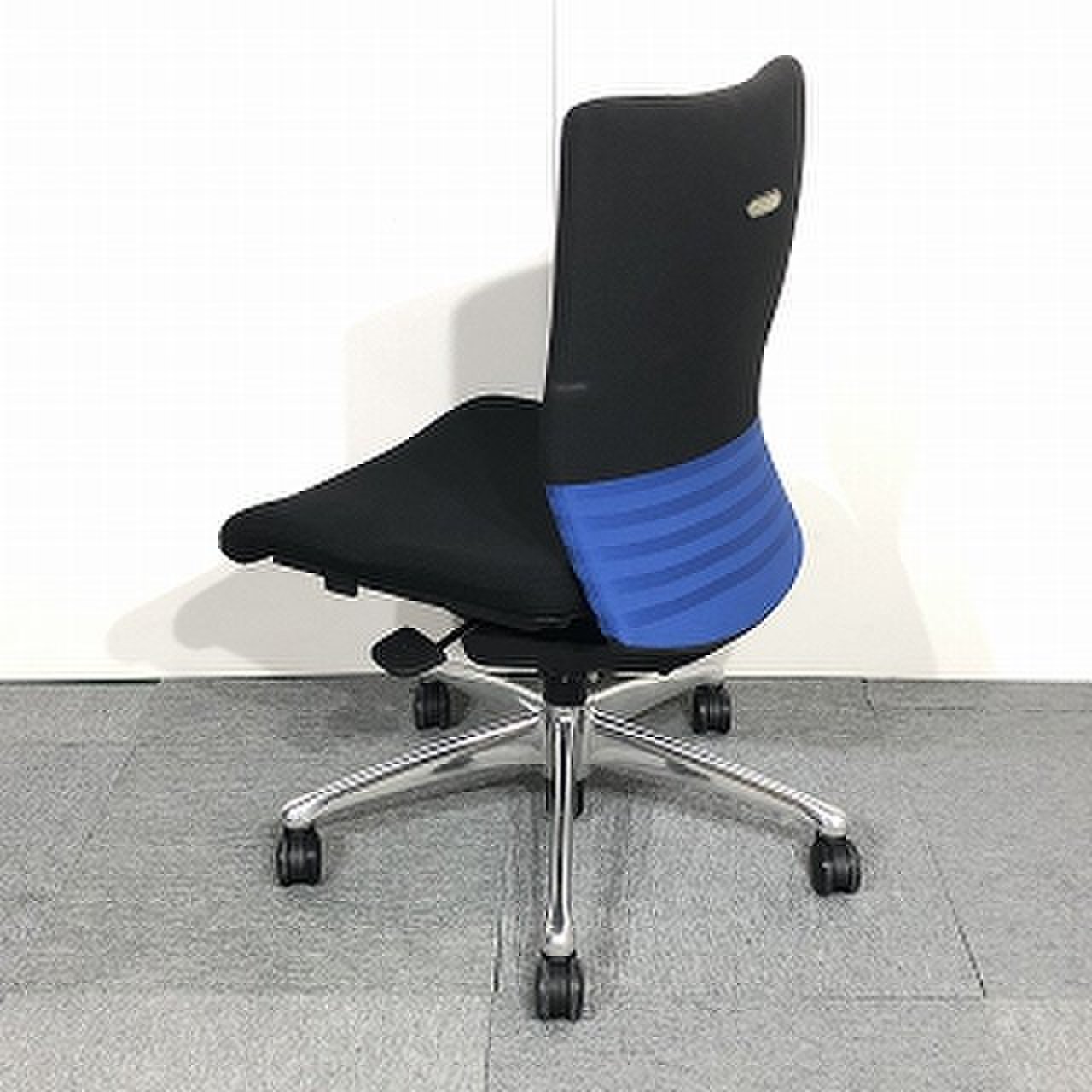 【在庫残り1脚】【人気商品】オカムラ製 フィーゴチェア ブラック×ブルーカラー 肘無しローバック【国内メーカー】【50%OFF】- 京都東寺店