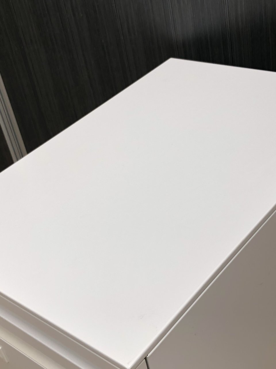 - かなり強い濃い黄ばみ・変色が商品全体にある。(例、天板、正面、背後、サイド部分にある。)