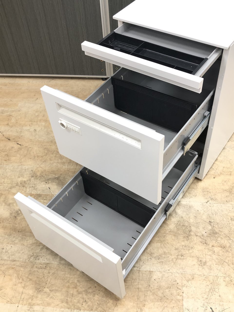 - 一部不具合ありその脇机・ワゴンの本来の効用を果たすための機能以外の一部が使用不可な状態。(例、引出が開閉しづらい、 キャスターロック機能使用不可、ラッチ不良 等がある。)