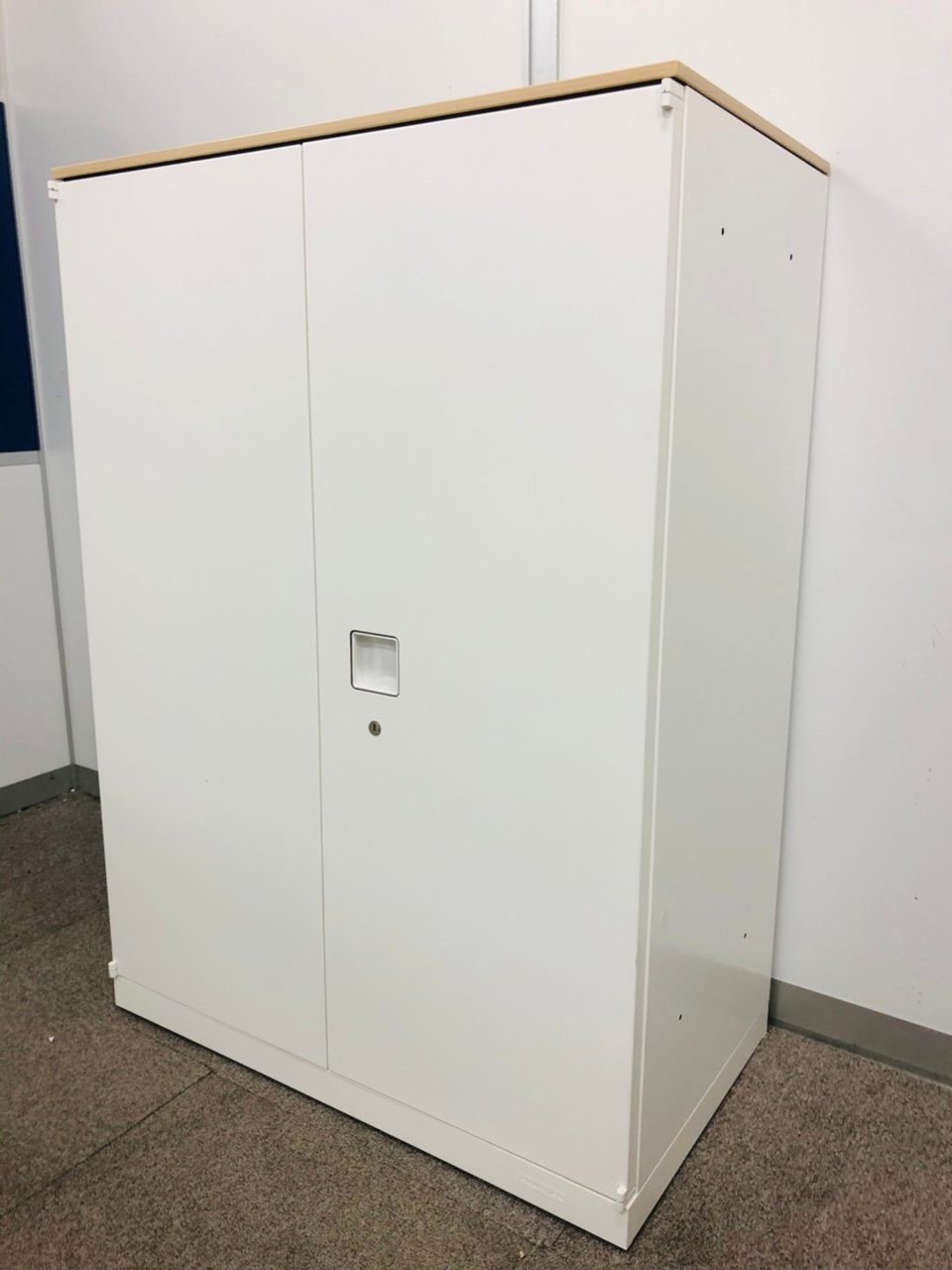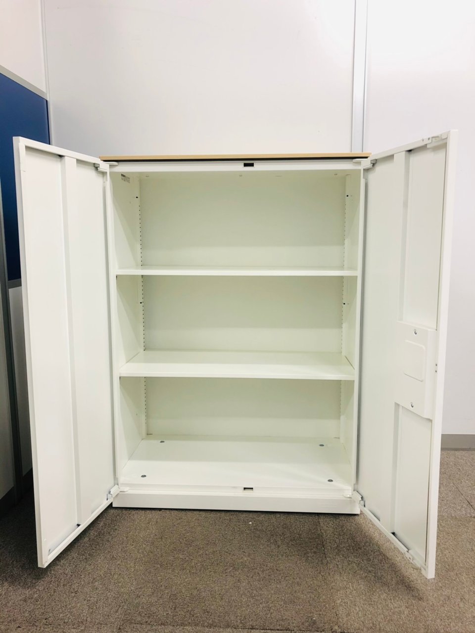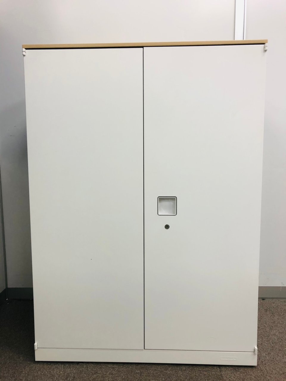 定番サイズ オカムラ/レクトラインシリーズ カラー:ネオホワイト 両開き書庫 鍵付き シリンダー錠 天板無し