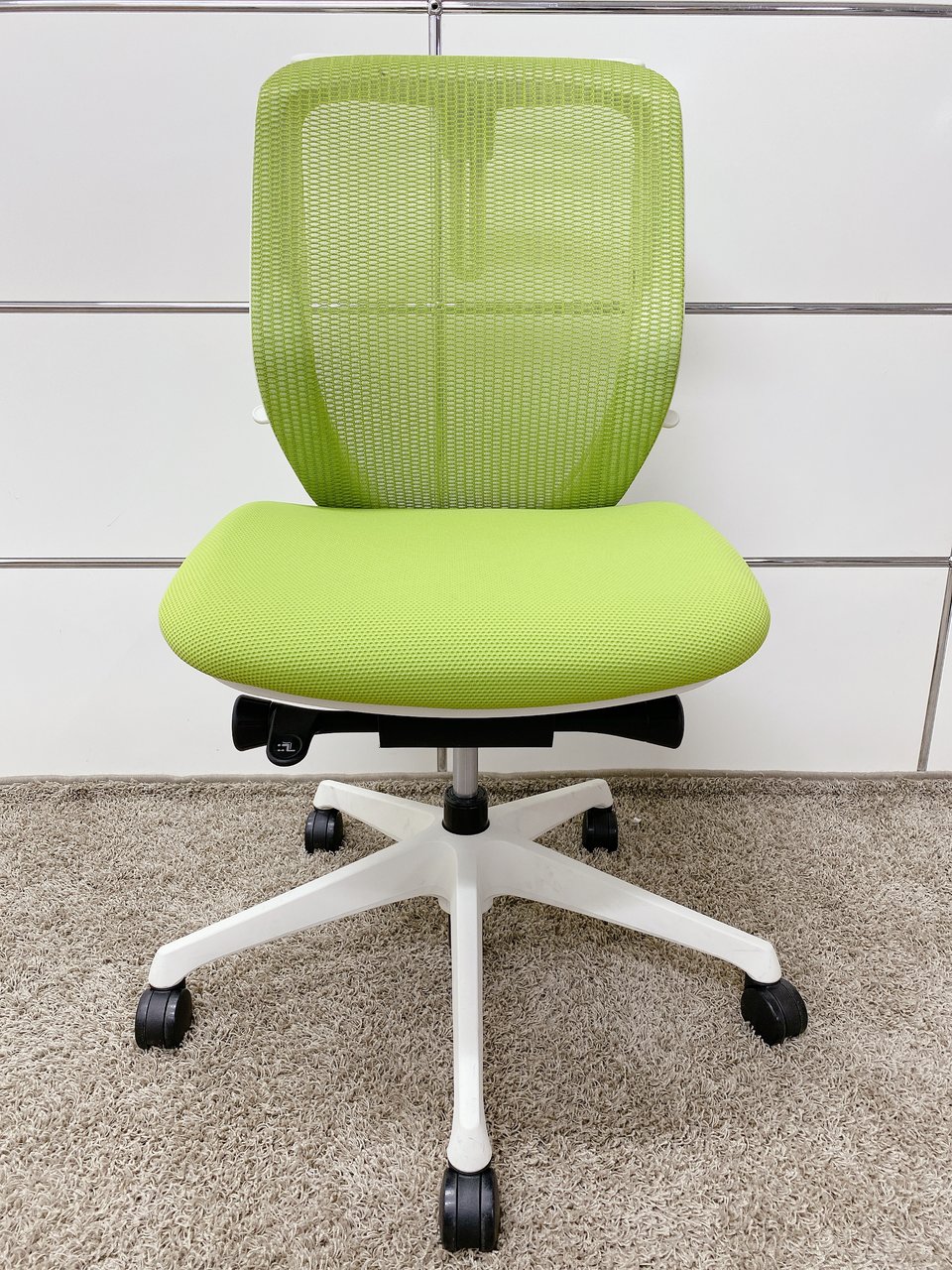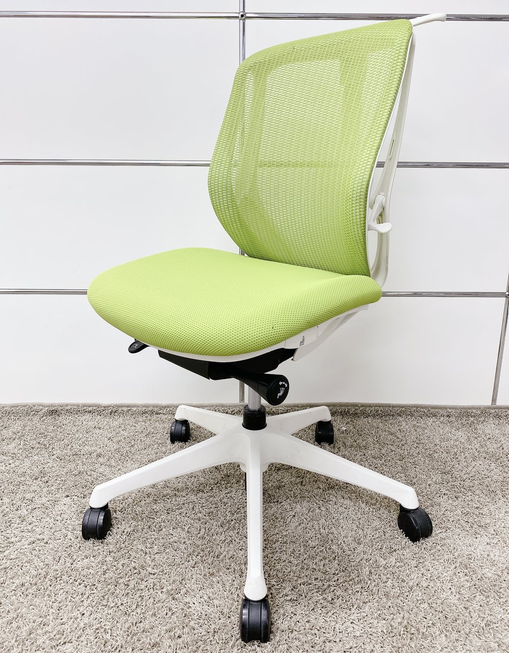 オカムラ製 シルフィ ライムグリーン ブラックフレーム 背面メッシュ ハイバック 樹脂脚 前傾チルト機能付き! オカムラ製品で最も人気を集める高機能メッシュチェア! 肘無しハイバックチェア!!