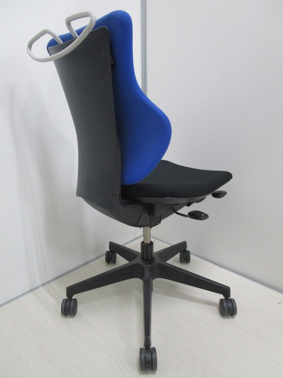 - 女性の作業姿勢に多く見られる2つの姿勢を、美しく支える背もたれ形状です。後傾しても背のラインを崩しません。