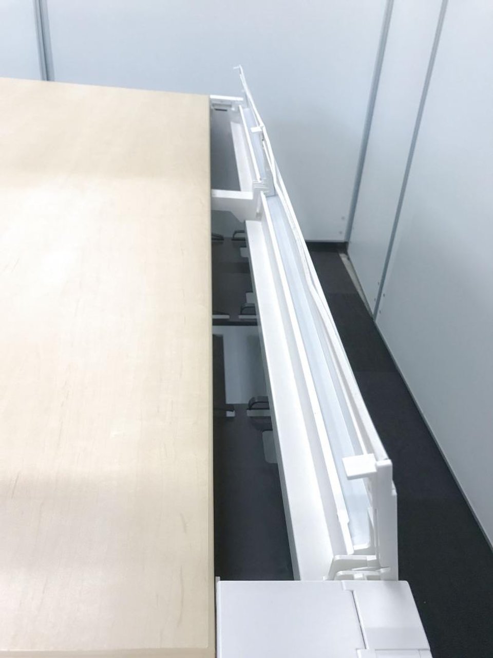 - 机の角がシャープなので、隣り合うデスクがフラットにつながります。すっきりとしたデザインです。