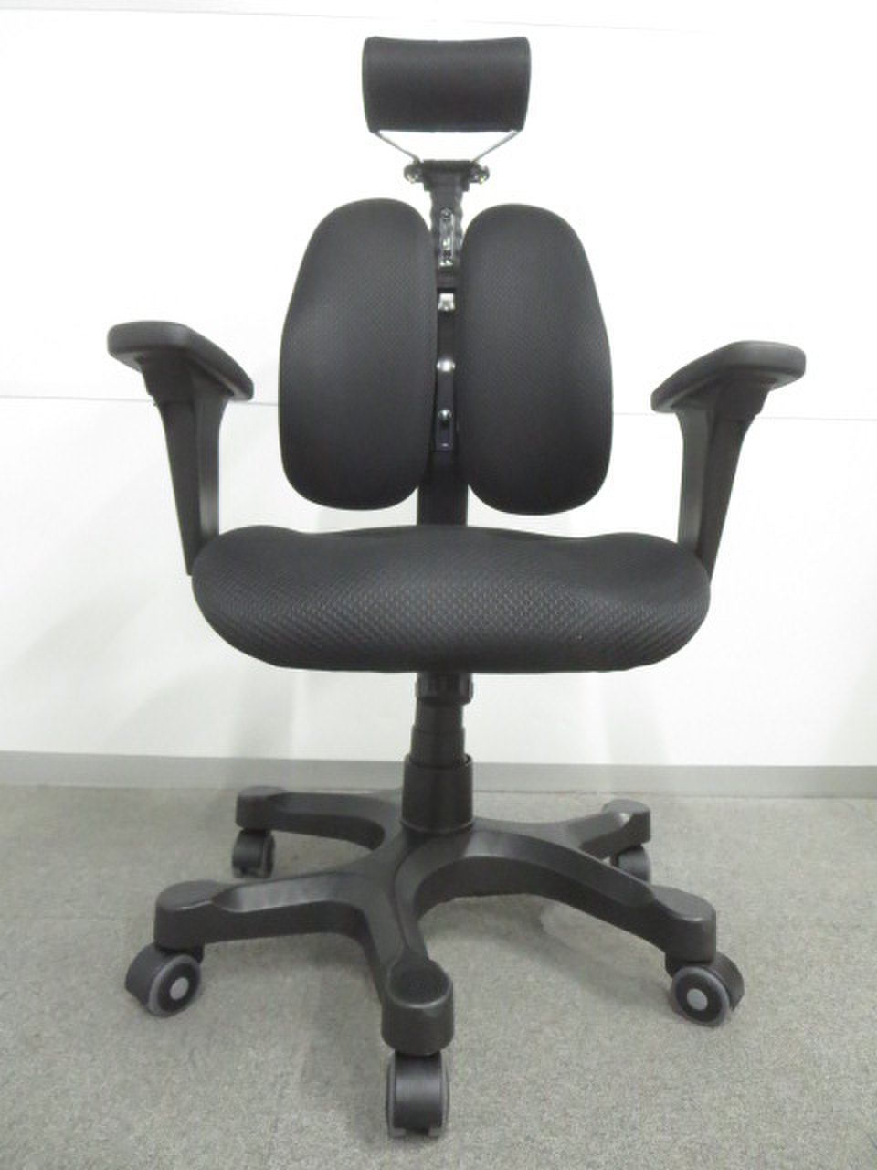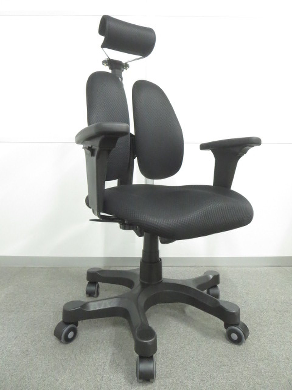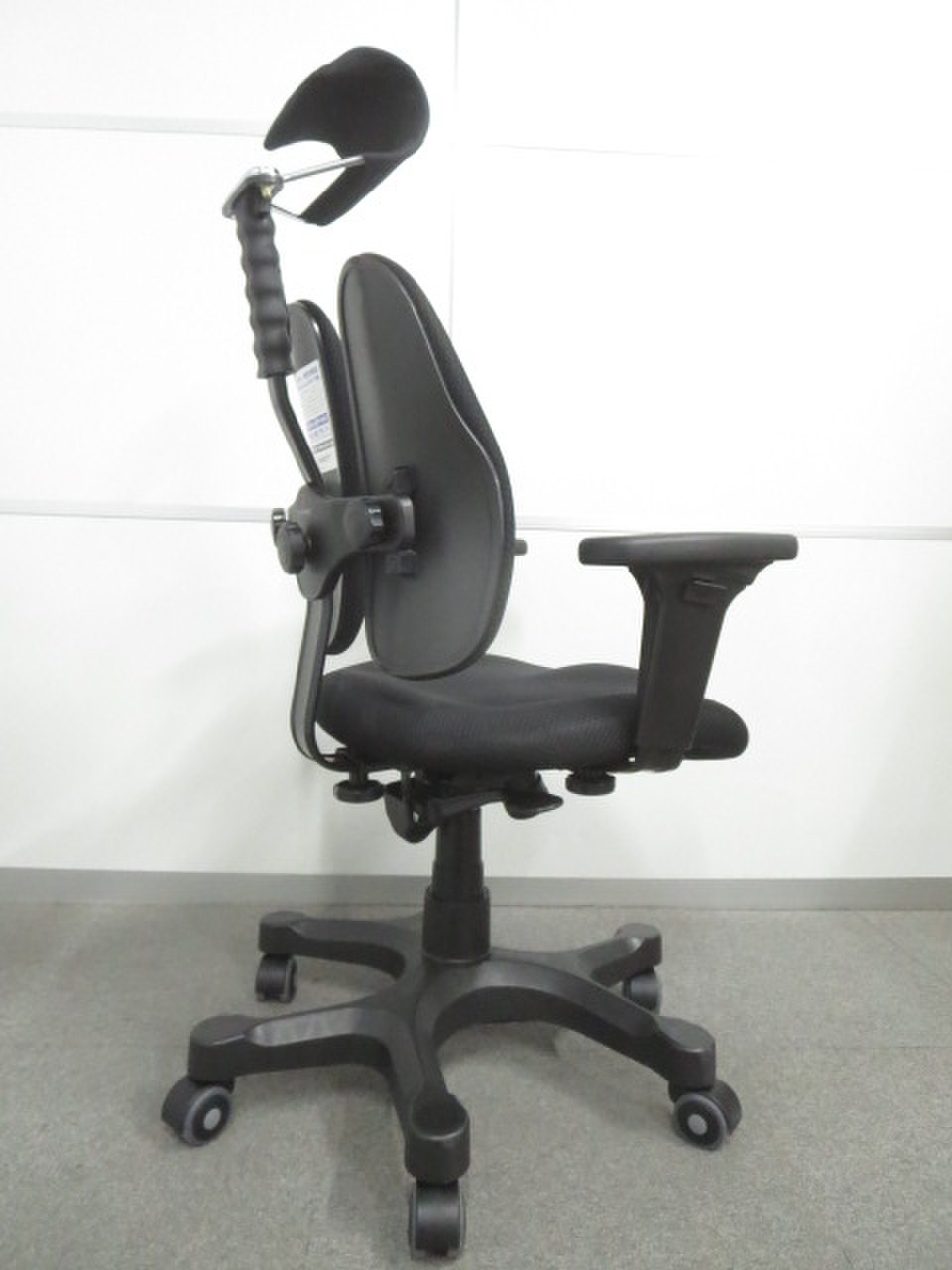 【腰・背骨を科学した人間工学デザイン!】■デュオレスト ヘッドレスト付きチェア 可動肘付 ブラック【ワンランク上の上質な座り心地を表現!】【店頭展示サンプル品あり】- 川崎店