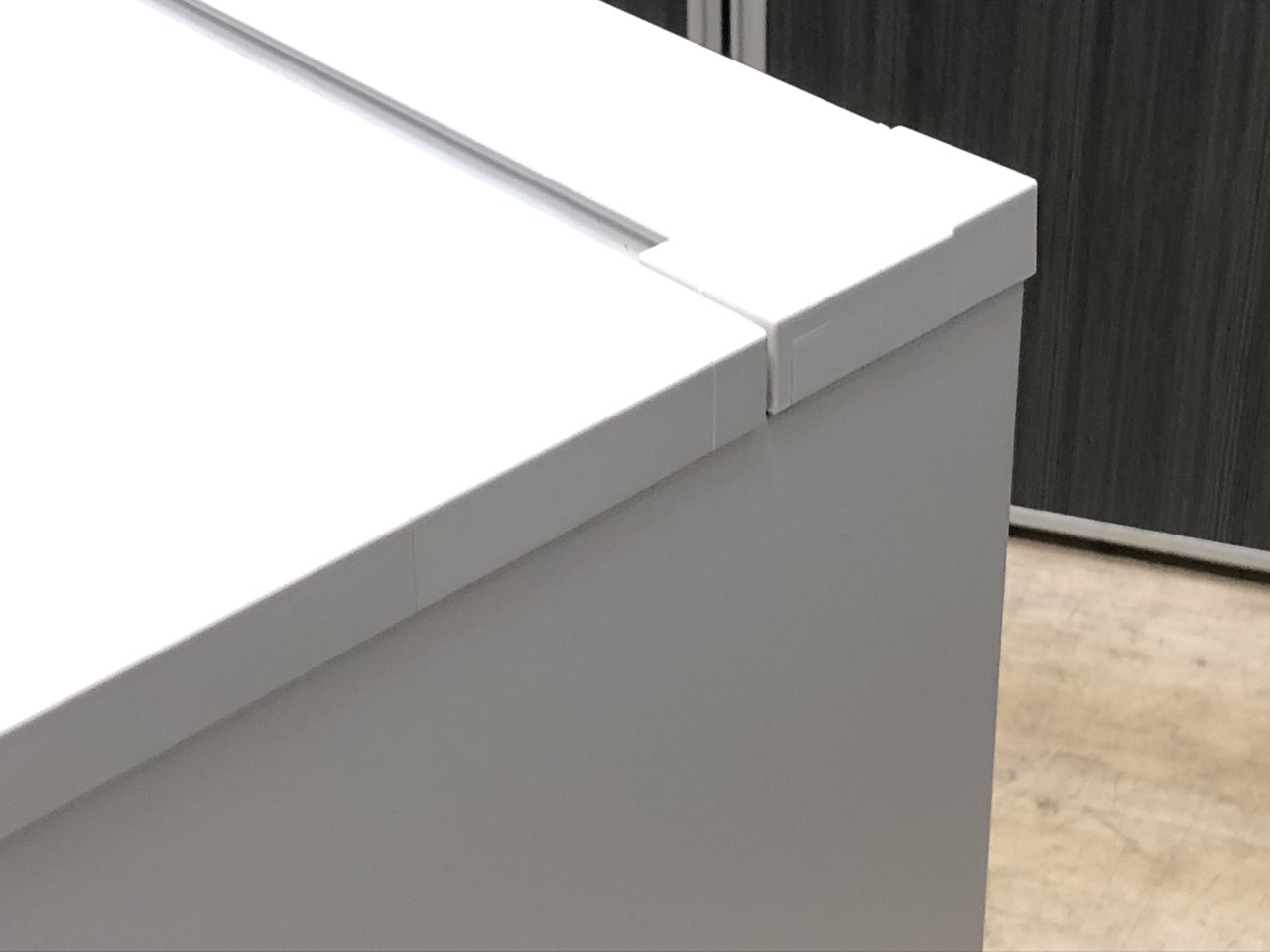 - シャープであらゆるオフィスに調和するシンプルなデザイン。天板は、ホワイト色と木目2色から選べます。