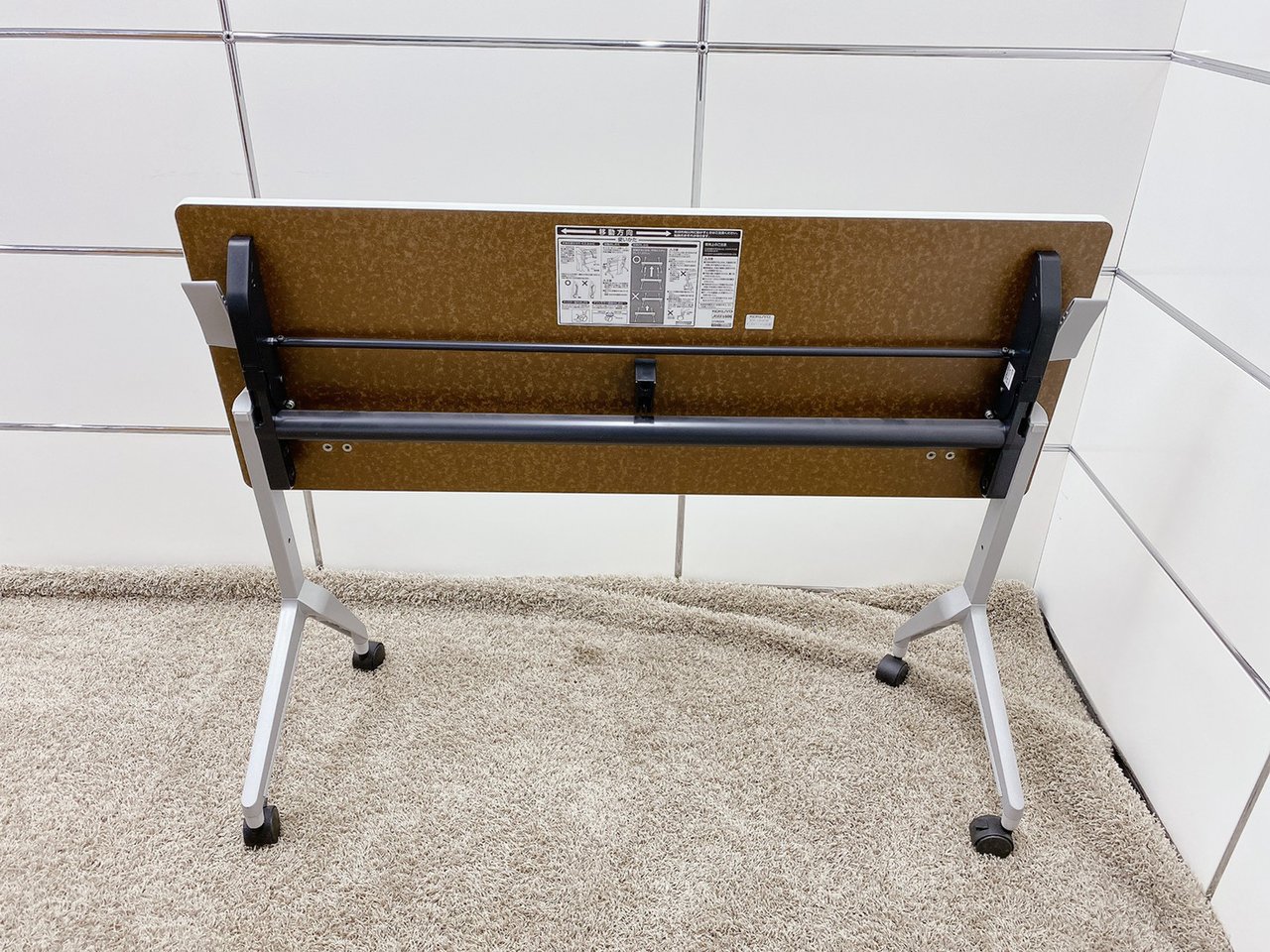 - 一部不具合あり天板歪み、アジャスター無し、キャスター使用不可ようなそのテーブルの本来の効用を果たすための機能以外の一部が使用不可な状態。(例、キャスターロッ ク機能使用不可、棚板無し等がある。)