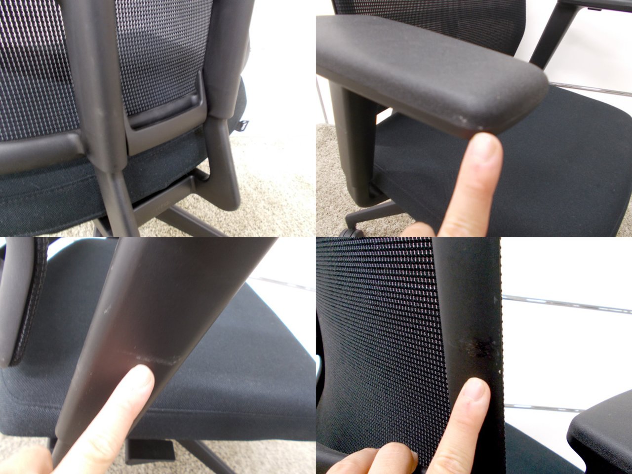 - 不具合多数そのチェアの本来の効用を果たすための機能に不具合ある。(例、オフィスチェアの上下昇降キャスター付きミーティングチェアのキャスター使用不可のような不 具合)