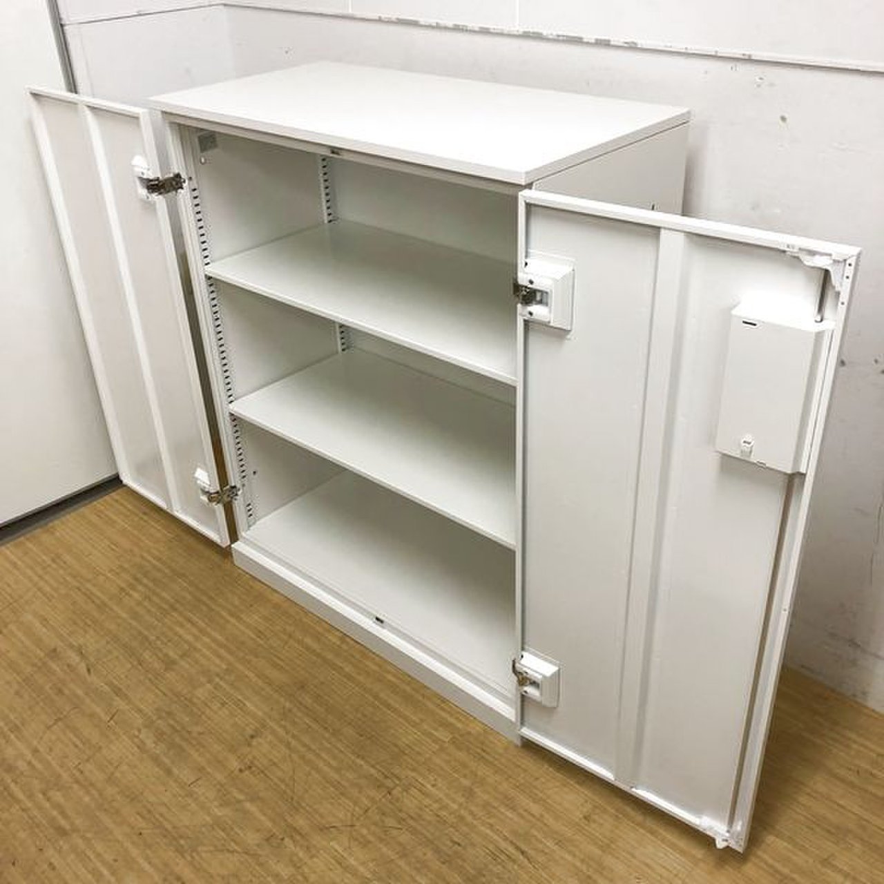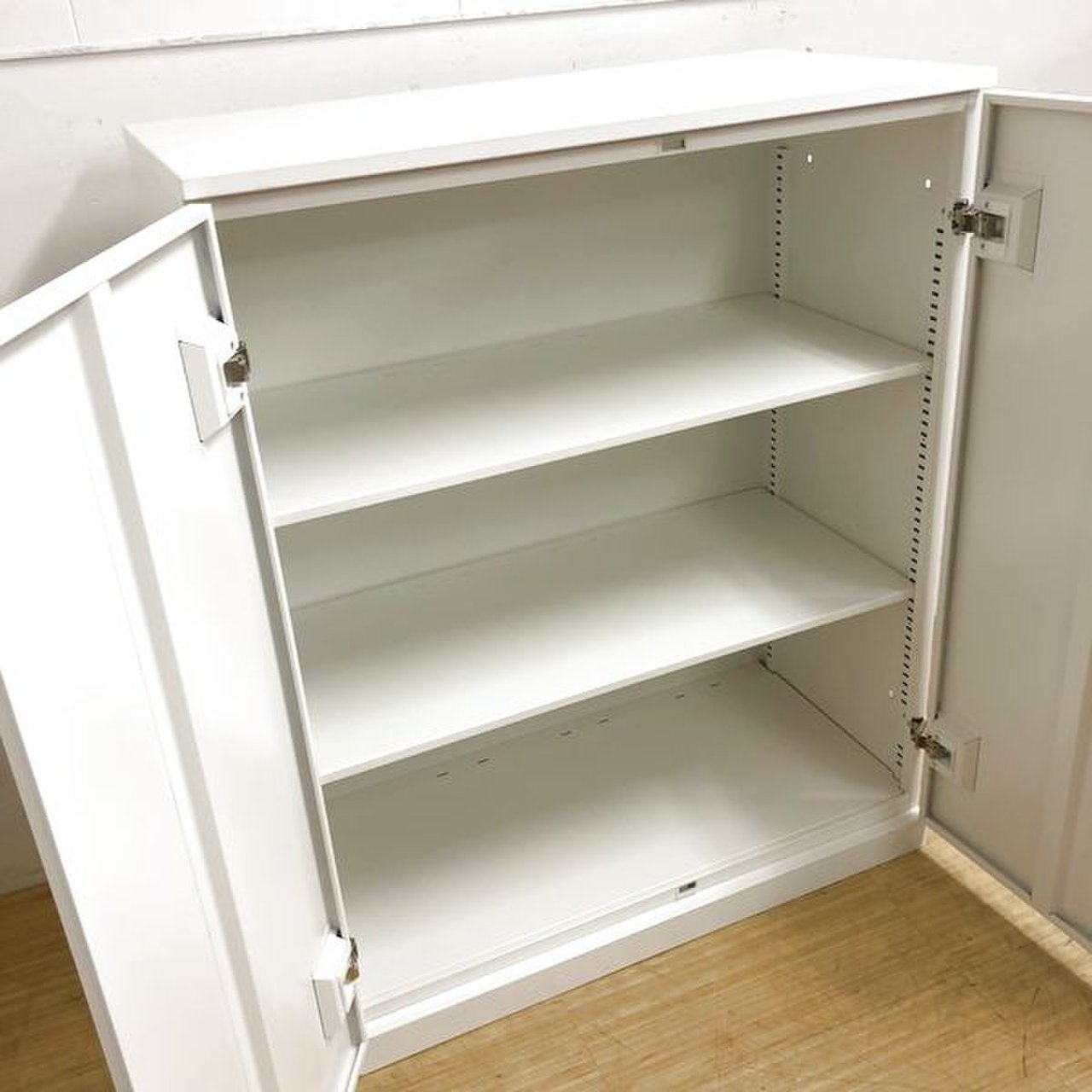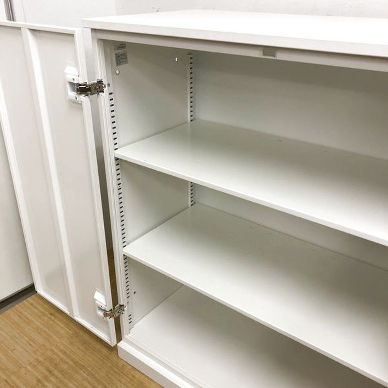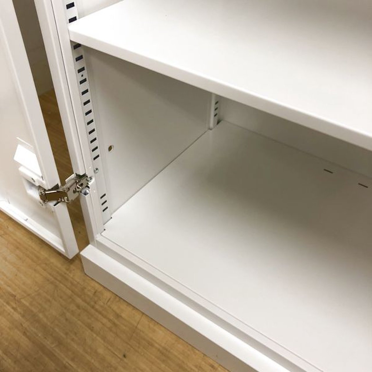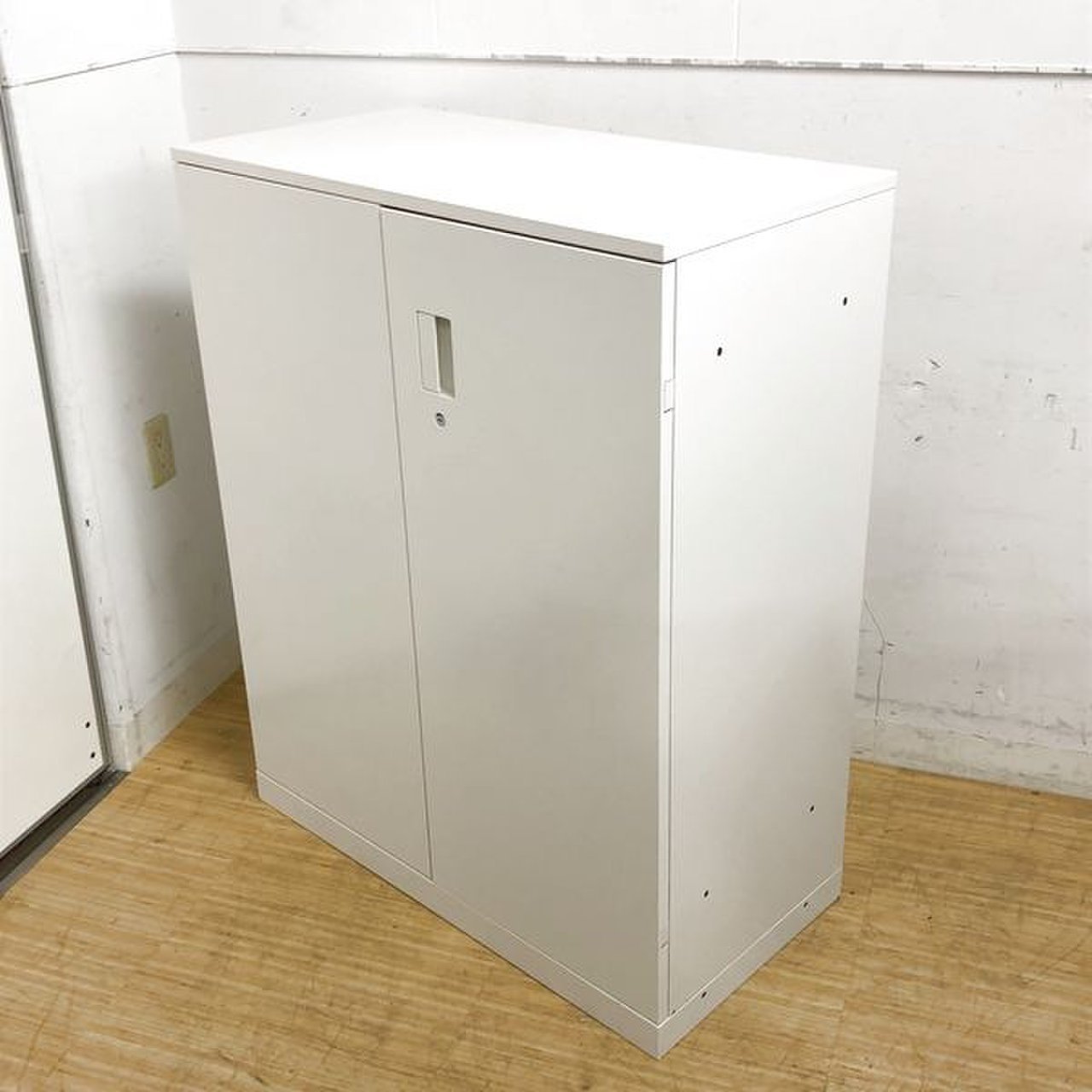 【書類の収納スペースを増やしたい方に!収納力抜群な観音開きタイプのキャビネット】■イトーキ製 (ITOKI)製 エスキャビネット(eS) 両開き書庫 ローキャビネット H1120㎜ ■天板/ベース付き ■ホワイト ■シリンダー錠【フラットで美しい!】【2509】弊社使用欄【A01036423】