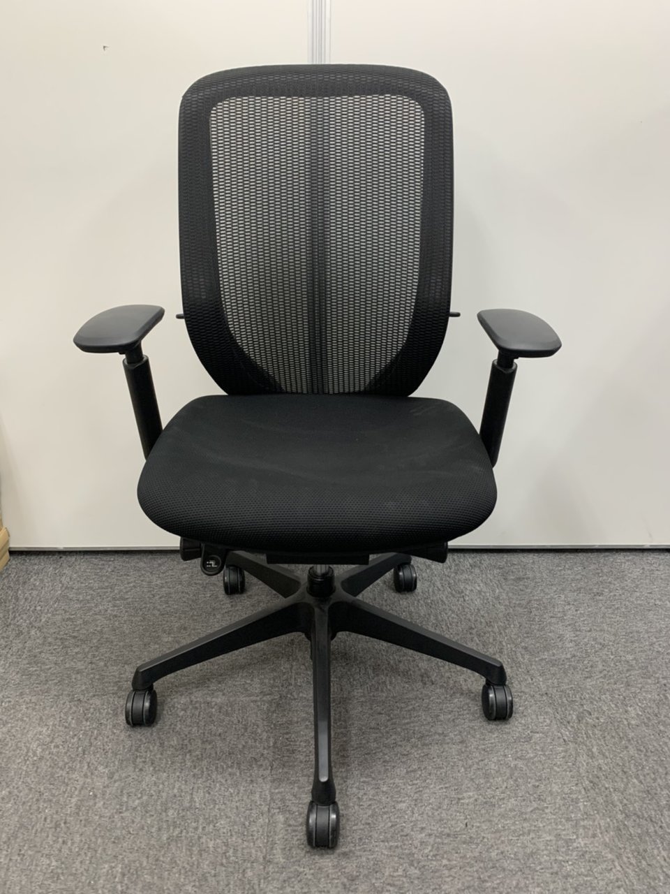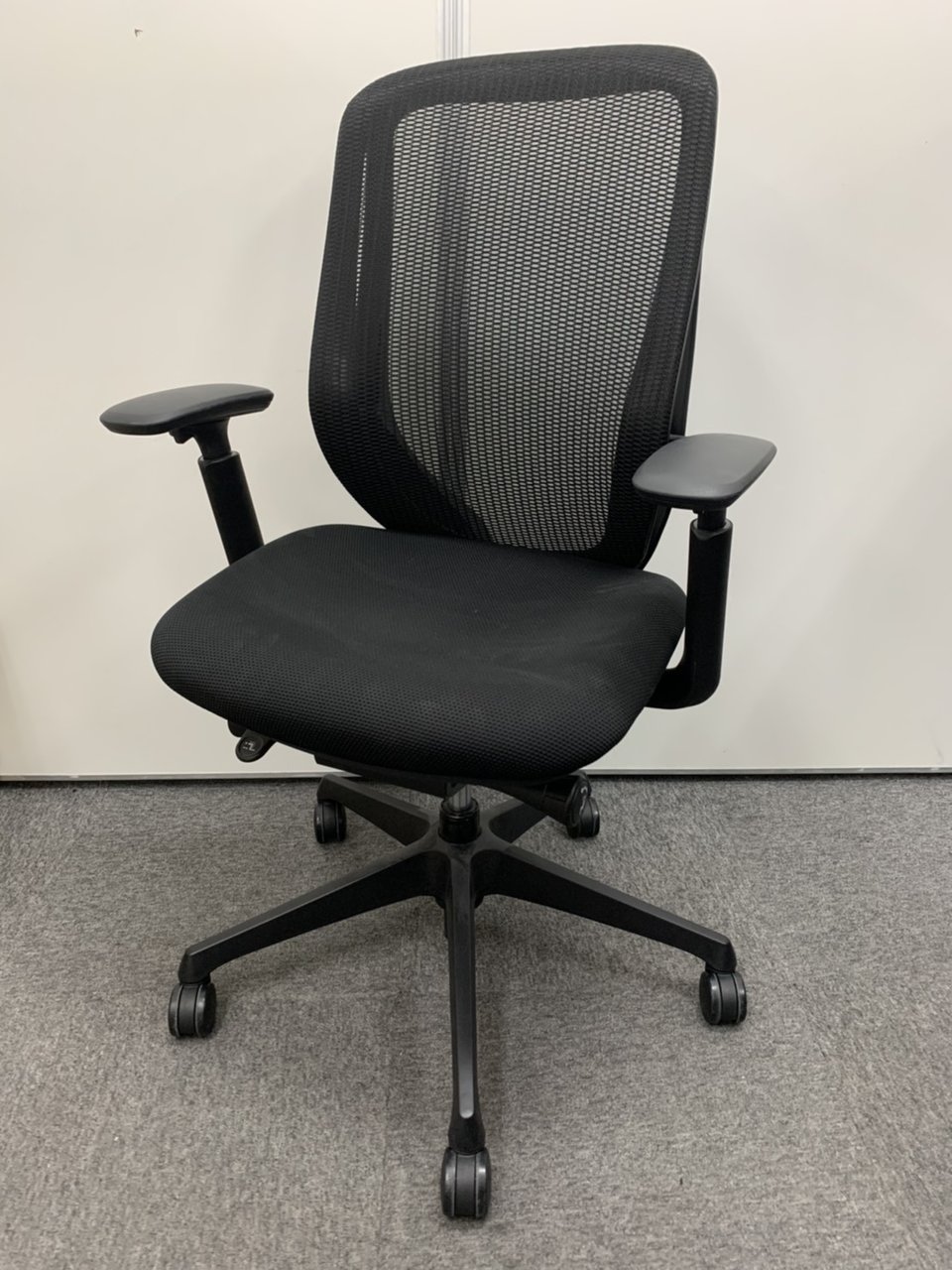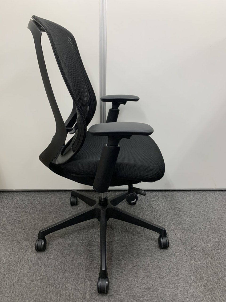 【限定1脚】【三次元曲面が身体にフィット!前傾チルト機能付き大人気メッシュチェア!】■オカムラ(okamura)製 シルフィーチェア(Sylphy) 肘付きハイバック ■背面メッシュ ■可動肘 ■ブラック×ブラックシェル ■ランバーサポート付き