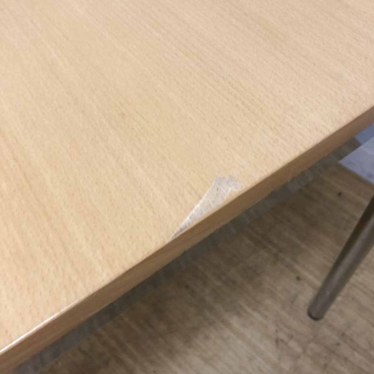 - 壊れている天板歪み、アジャスター無し、キャスター使用不可のようにそのテーブルの本来の効用を果たすための機能に不具合がある。